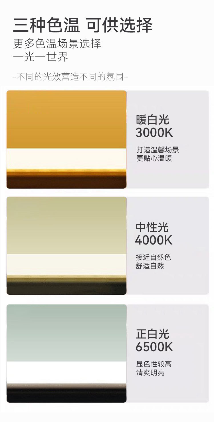 1:可定制其他色温 4000K, 3000K, 红光,绿光,蓝光,粉光,紫光,三色变光等;