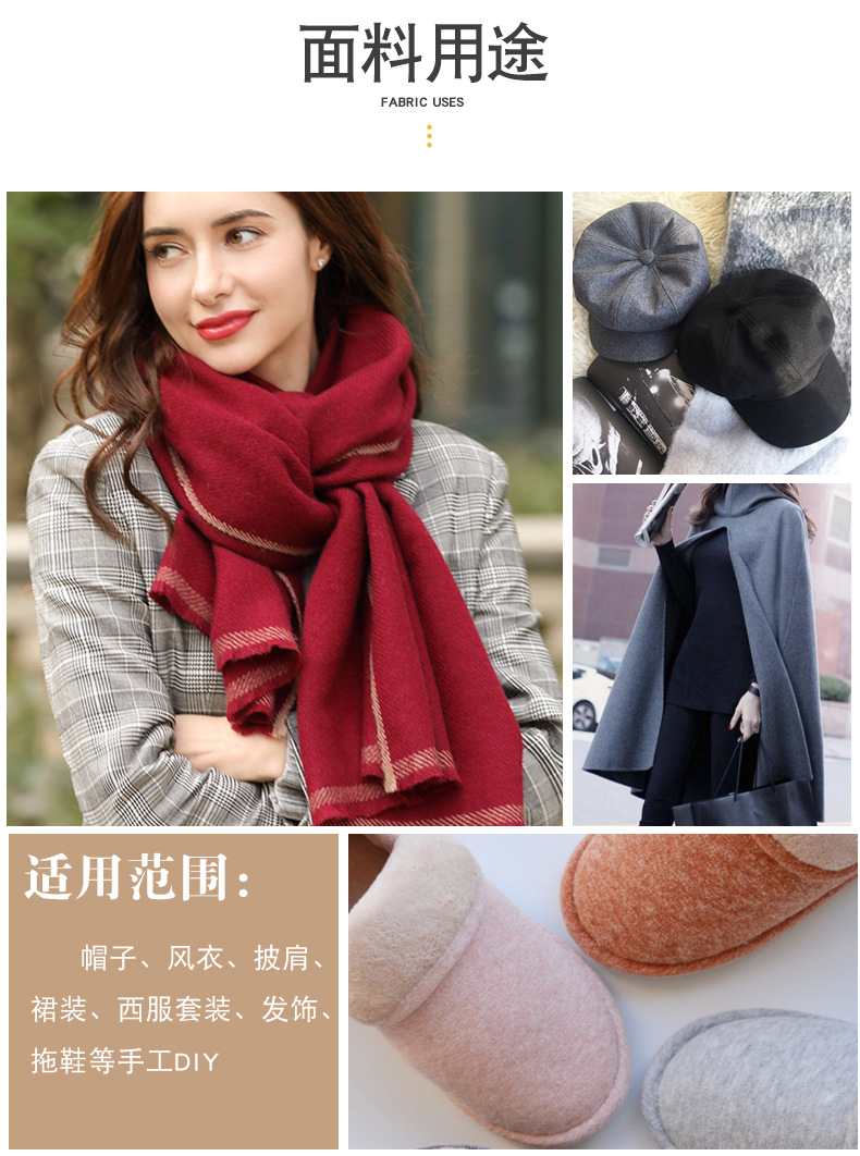 特点:呢面细腻平整,手感柔软丰满,混色均匀等。