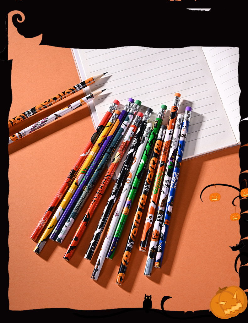 Канцелярские товары к Хэллоуину, набор карандашей с тыквой и черепом