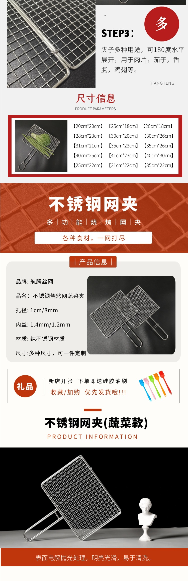 Клипса для овощей на гриле из нержавеющей стали 304, ракетка для гриля, сетка для лука-порея, клипса для рыбы, коммерческий инструмент для решеток