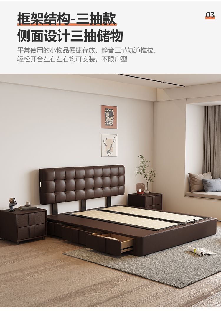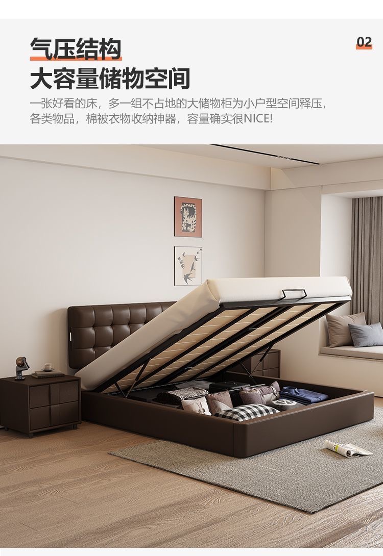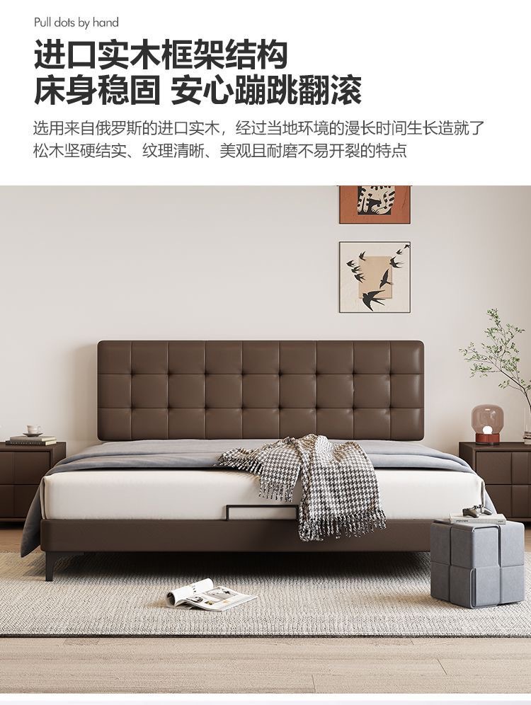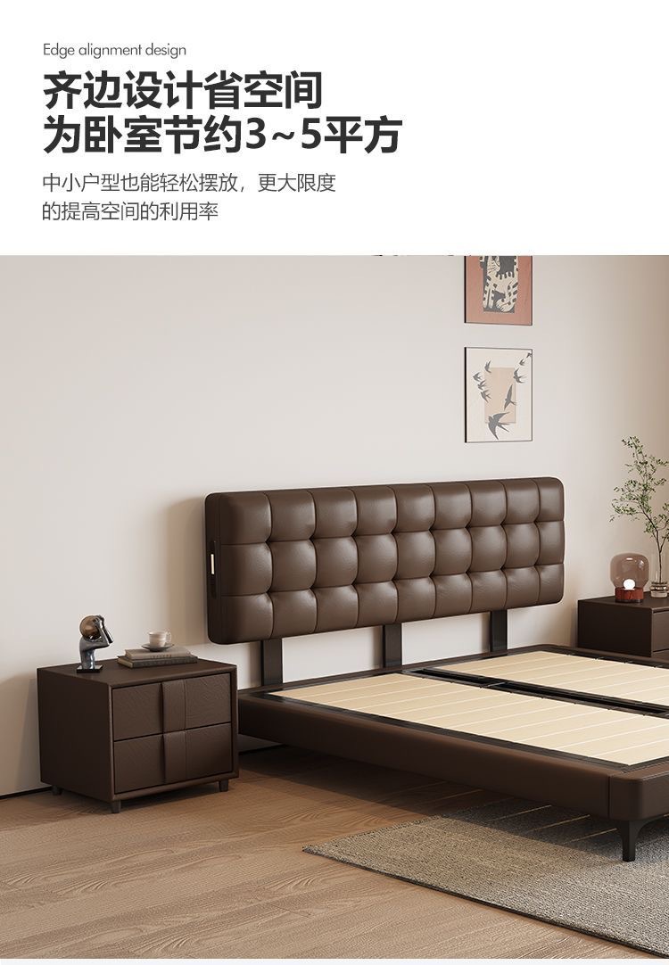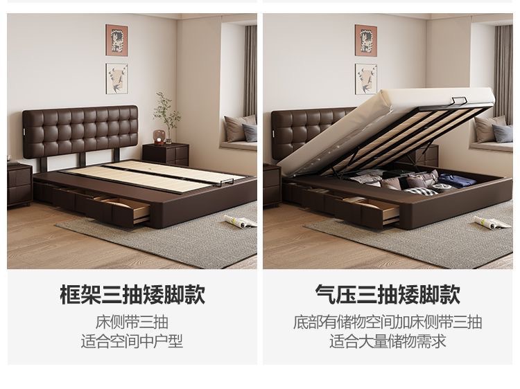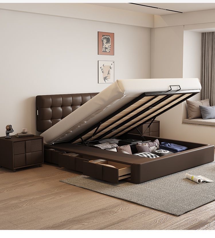 Итальянская Normcore кожаная кровать, коричневая, вафельная, современная простая, двуспальная, с местом для хранения, высококачественная, для маленькой квартиры