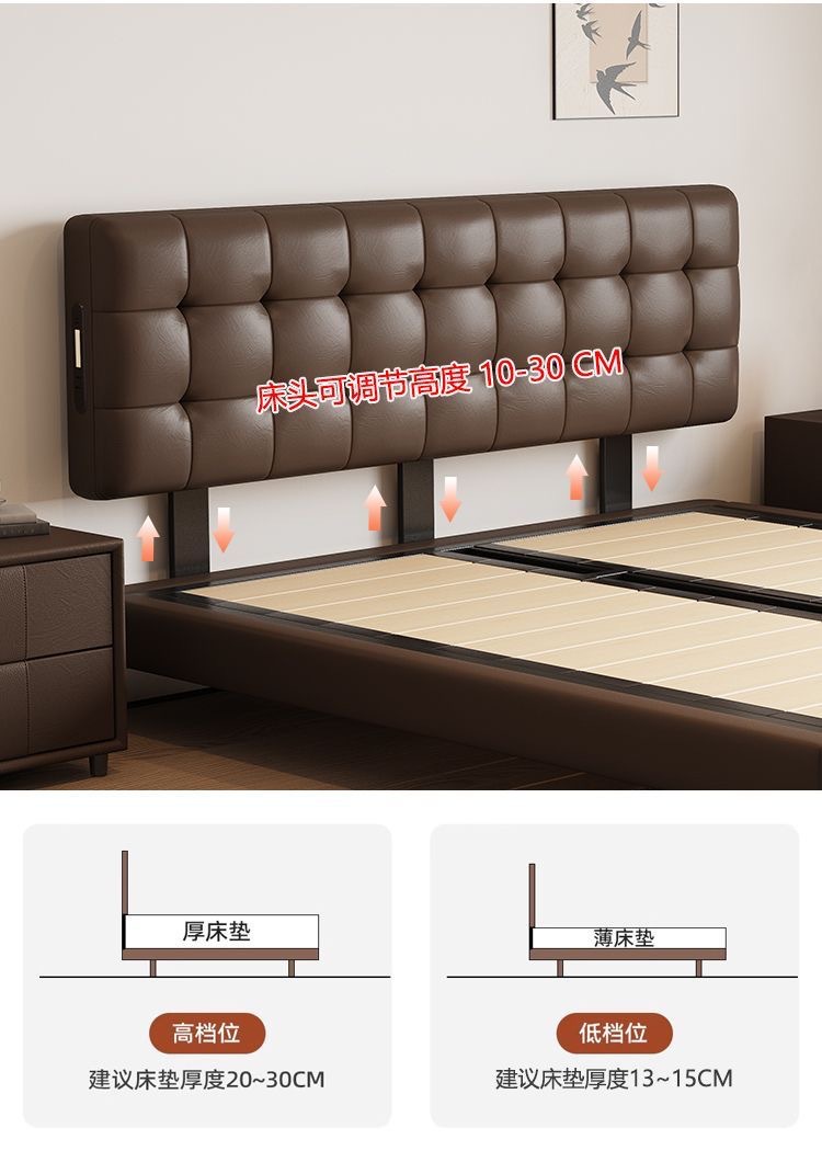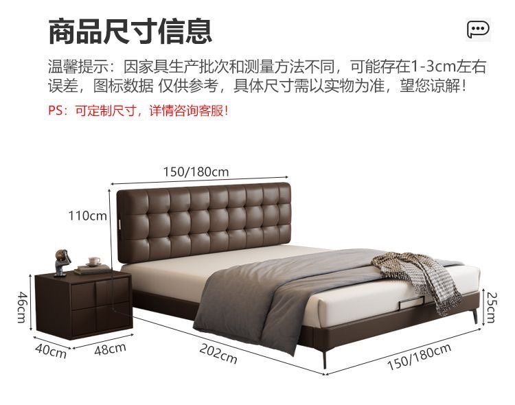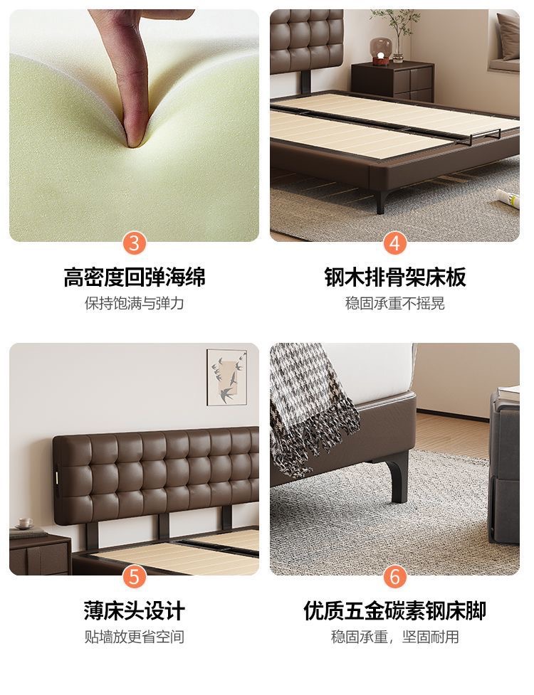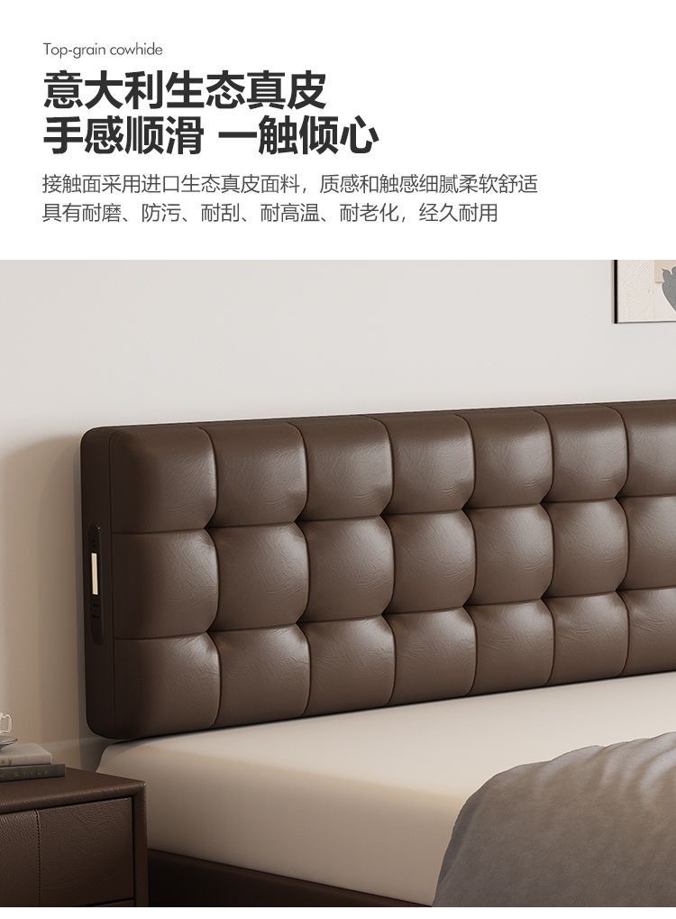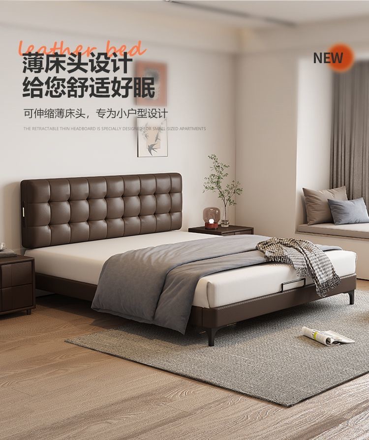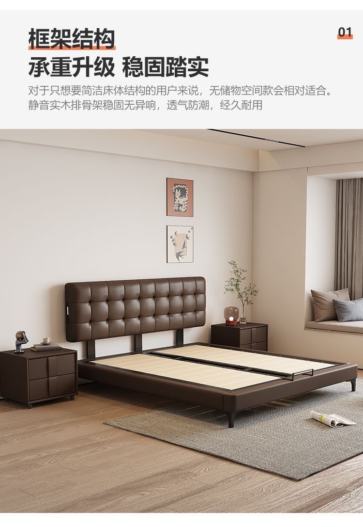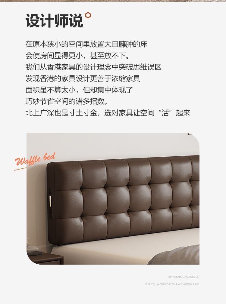 Итальянская Normcore кожаная кровать, коричневая, вафельная, современная простая, двуспальная, с местом для хранения, высококачественная, для маленькой квартиры