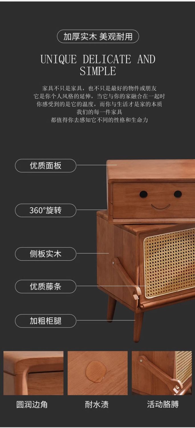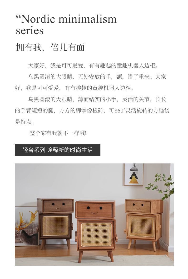 Прикроватная тумбочка из массива дерева, детская, японский стиль, мини-шкаф для хранения с простыми ящиками