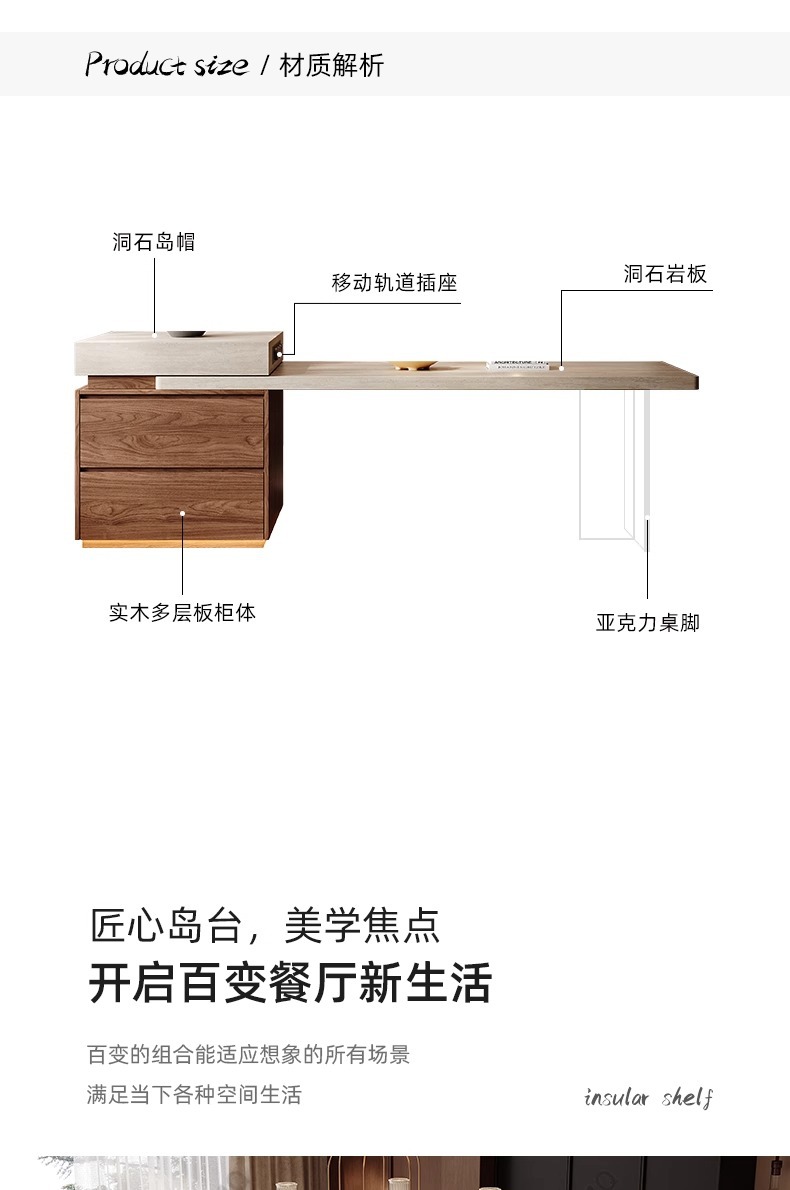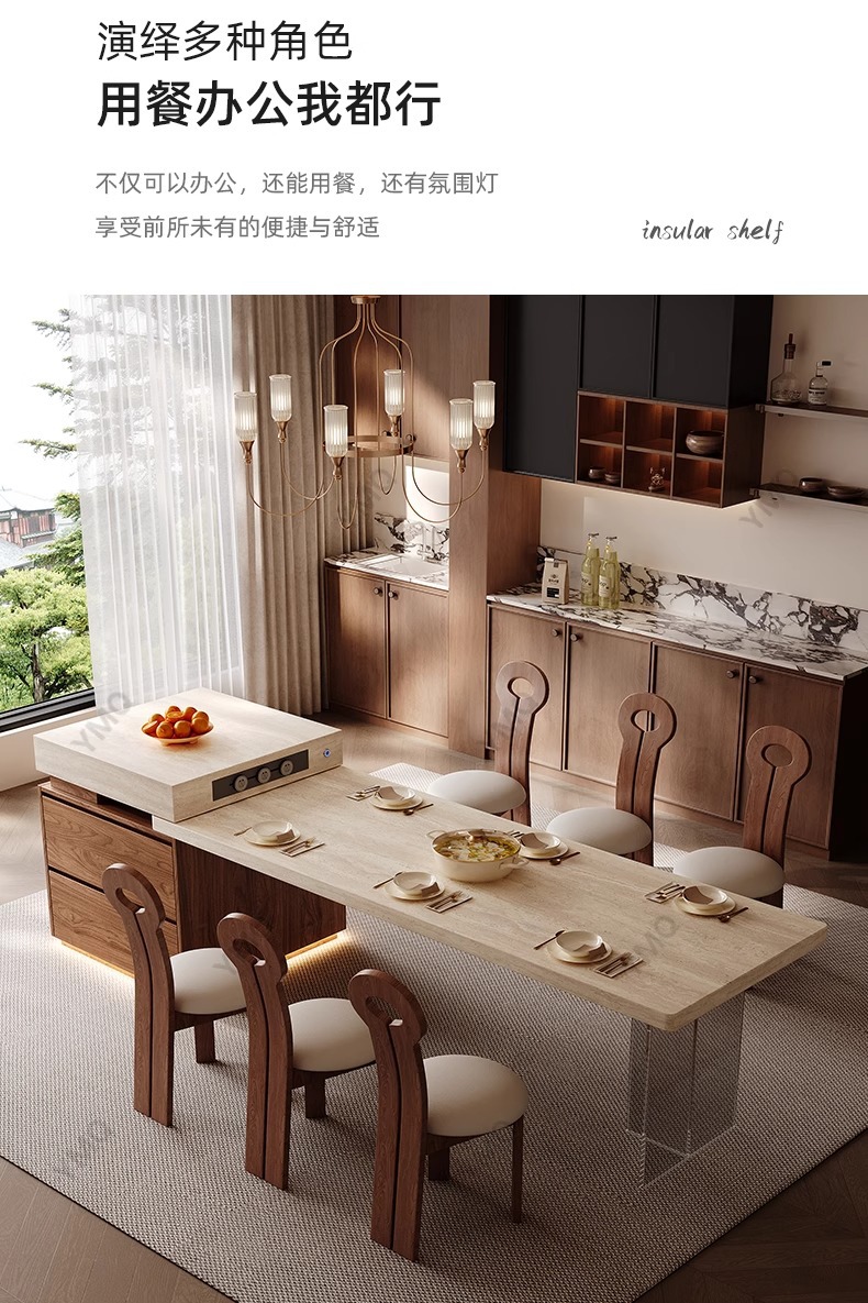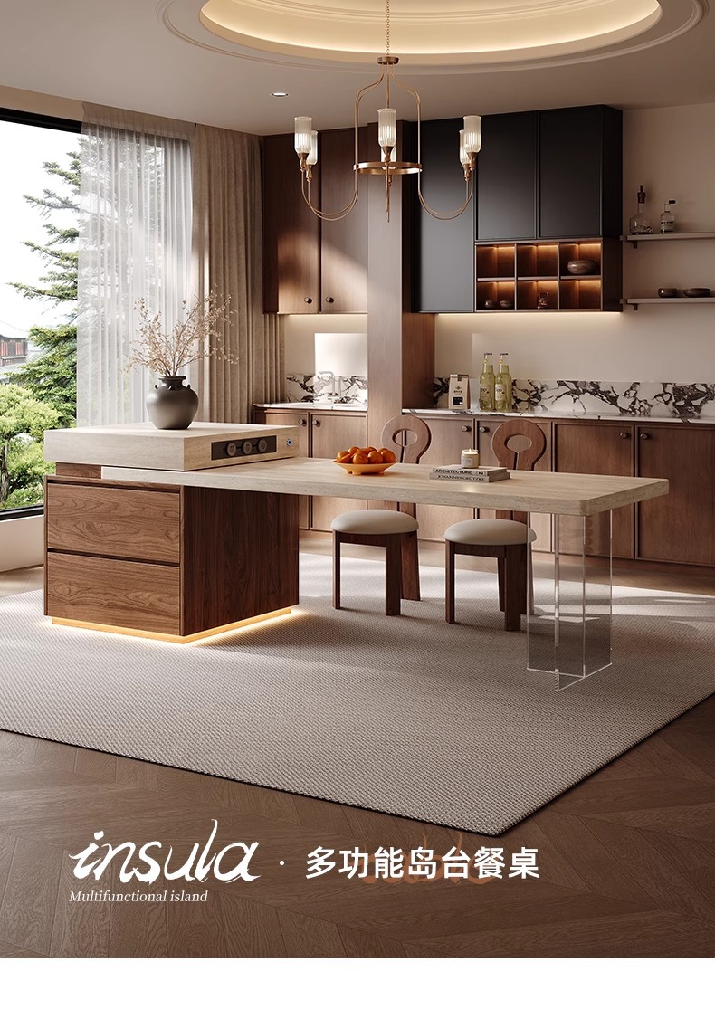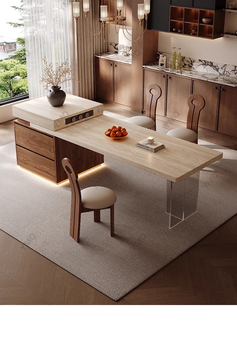 Островной стол в средневековом стиле, обеденный стол, интегрированный, раскладной, новый 2025 года, кухонный остров, стол из сланца для малогабаритной квартиры