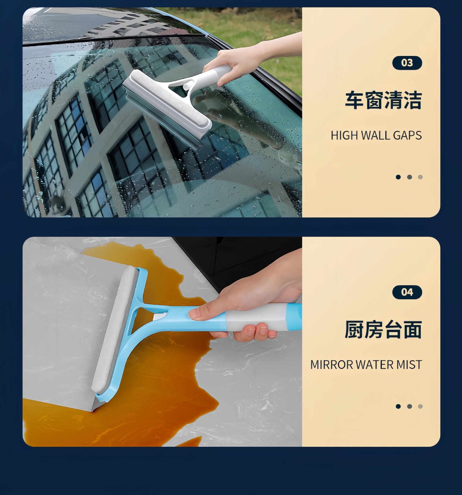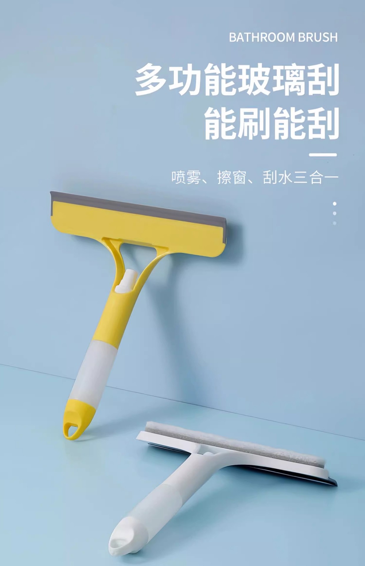Многофункциональный инструмент для мытья стекол, двусторонняя щетка и скребок с распылителем, три в одном