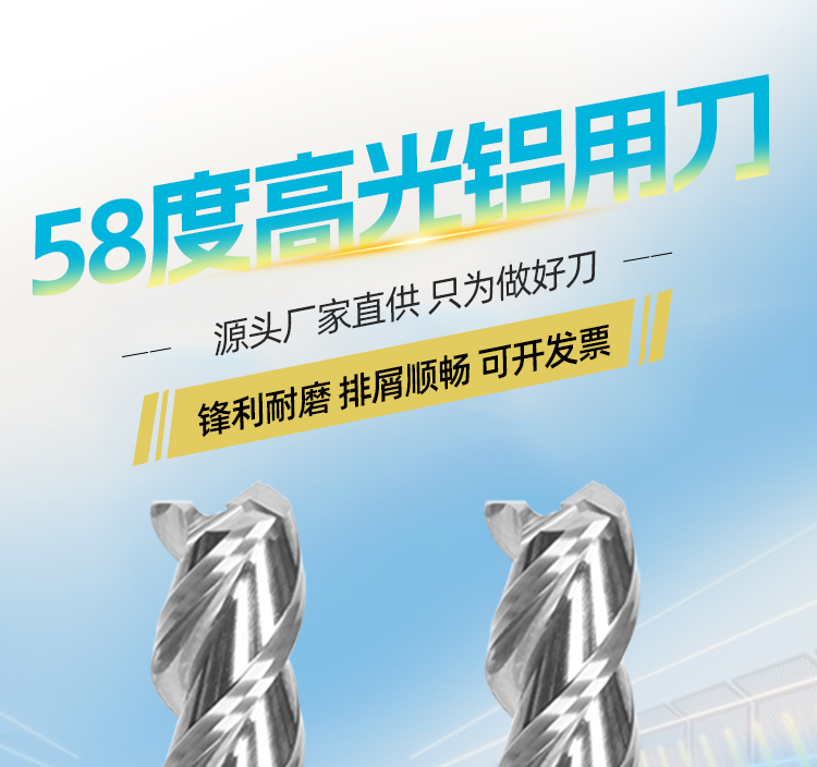 58-градусный 3-зубчатый алюминиевый фрезерный резец с удлиненным твердосплавным концом для CNC, высокоглянцевый плоский прямой хвостовик