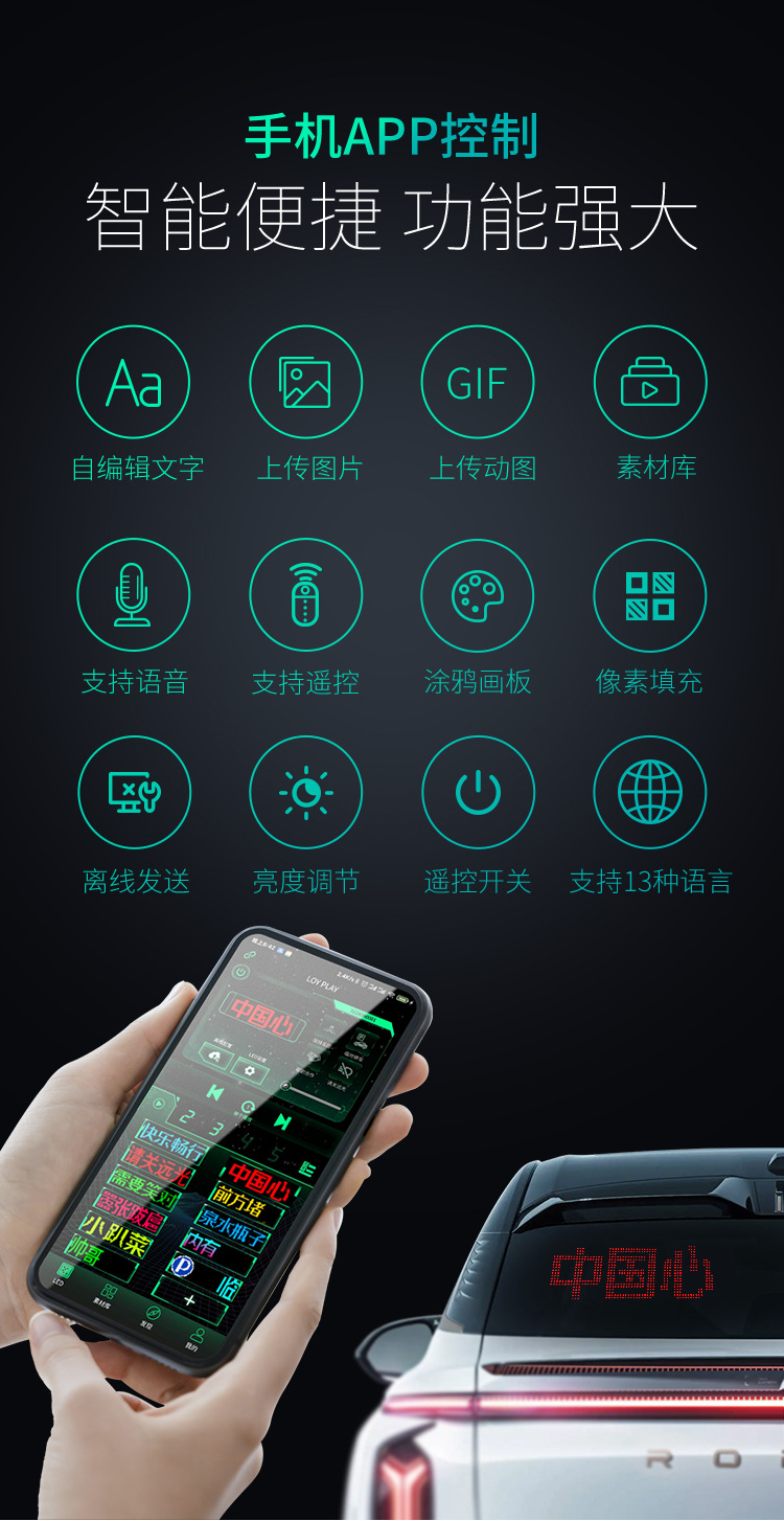 Гибкий светодиодный экран для заднего стекла автомобиля RGB полный цвет Devil's Eye USB водонепроницаемый экран