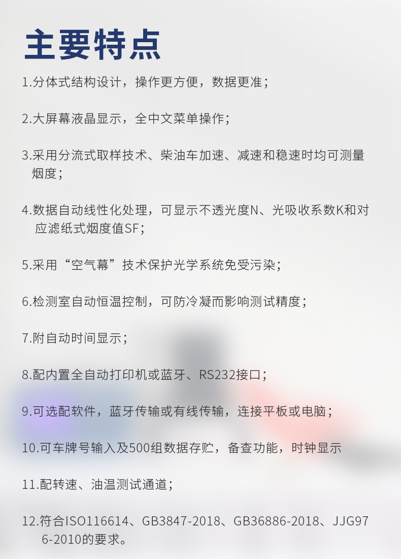适用范围 汽车、柴油车尾气分析