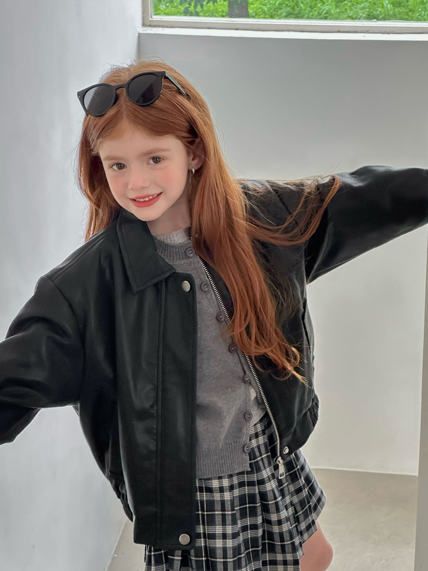 Детская верхняя одежда осень стиль 2025 новый стиль детская осенняя кожаная одежда модная детская кожаная куртка