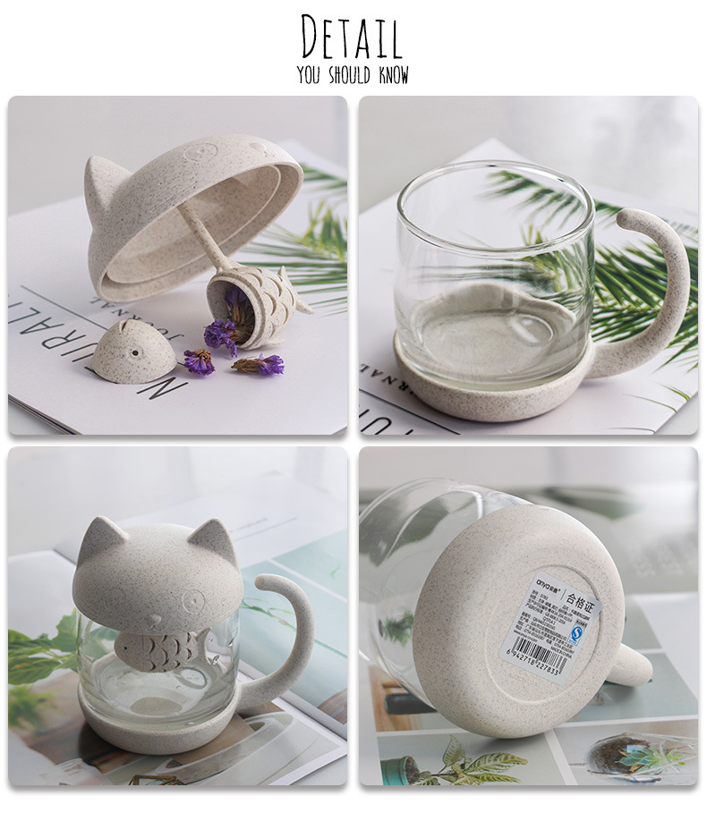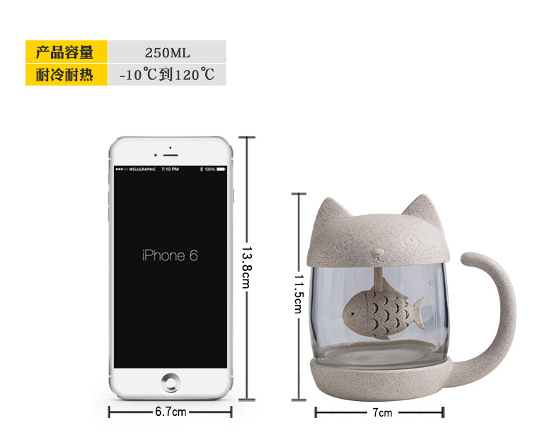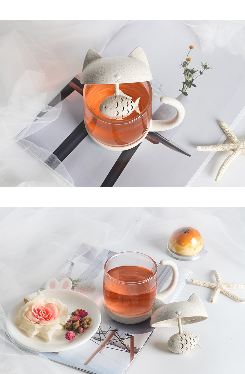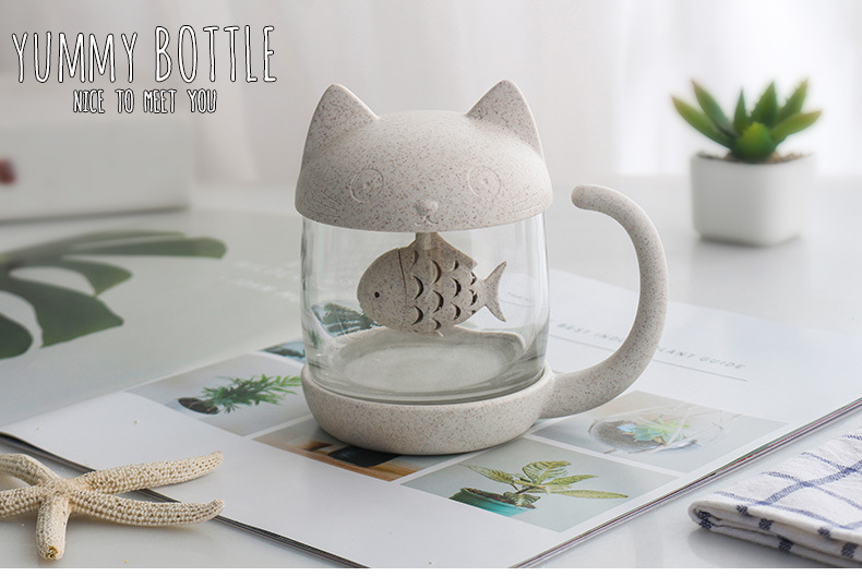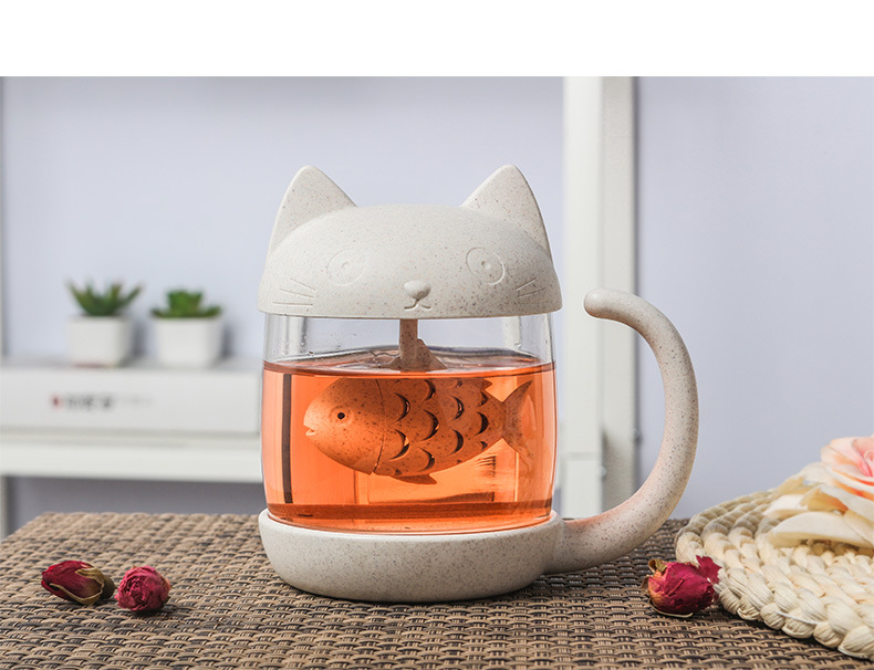 Котенок, рыба, чайная чашка, кружка на день рождения девочки, офисная милая чайная чашка, домашняя стеклянная чашка