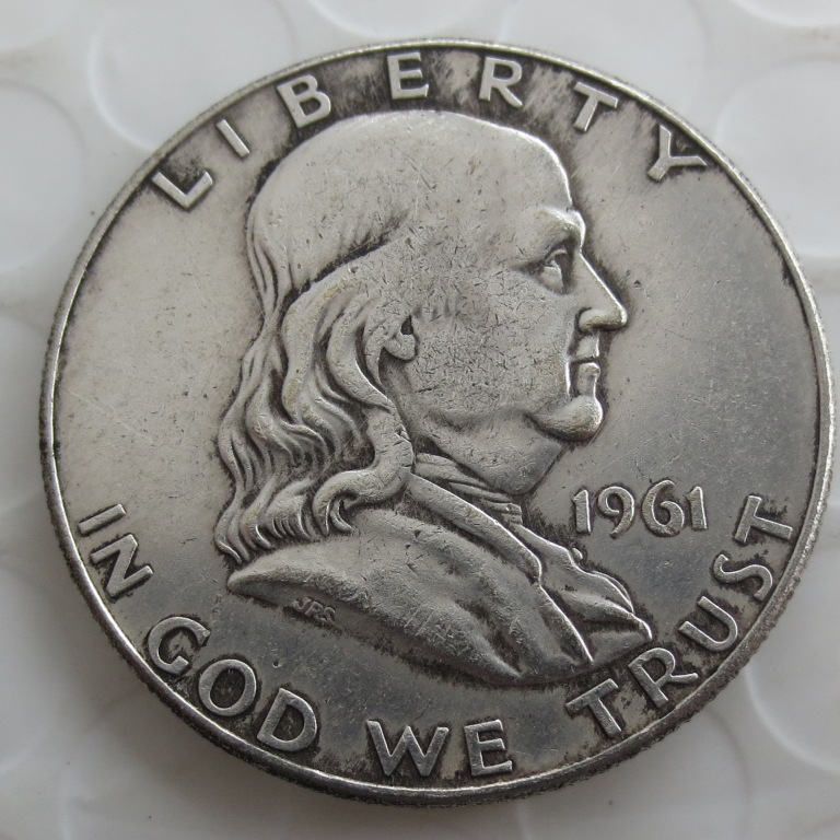 Антикварная монета полдоллара Франклина, латунь с серебряным покрытием, в круглой коробке