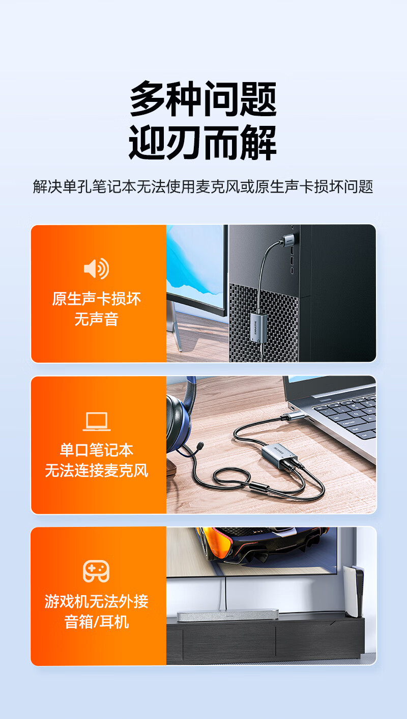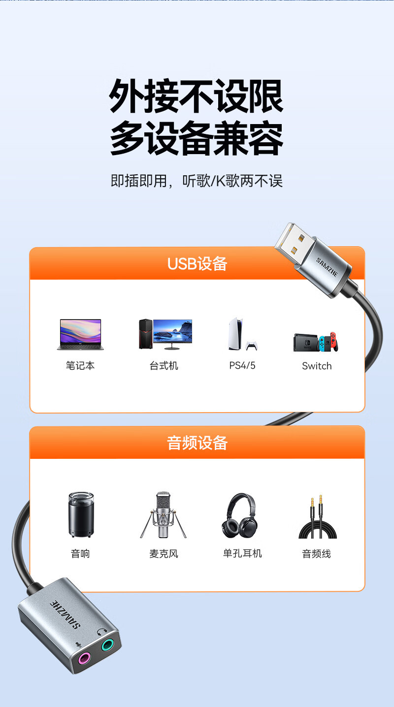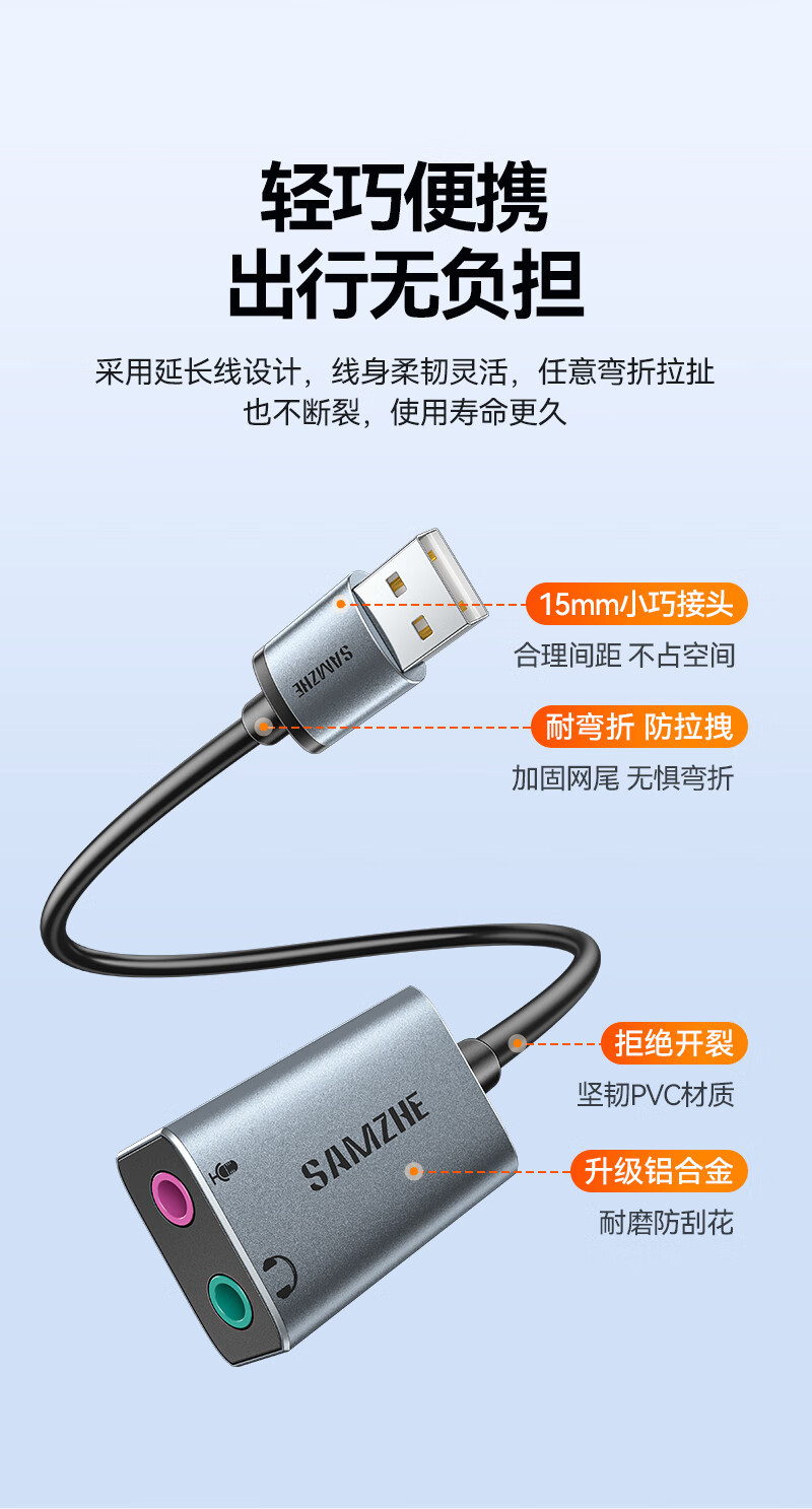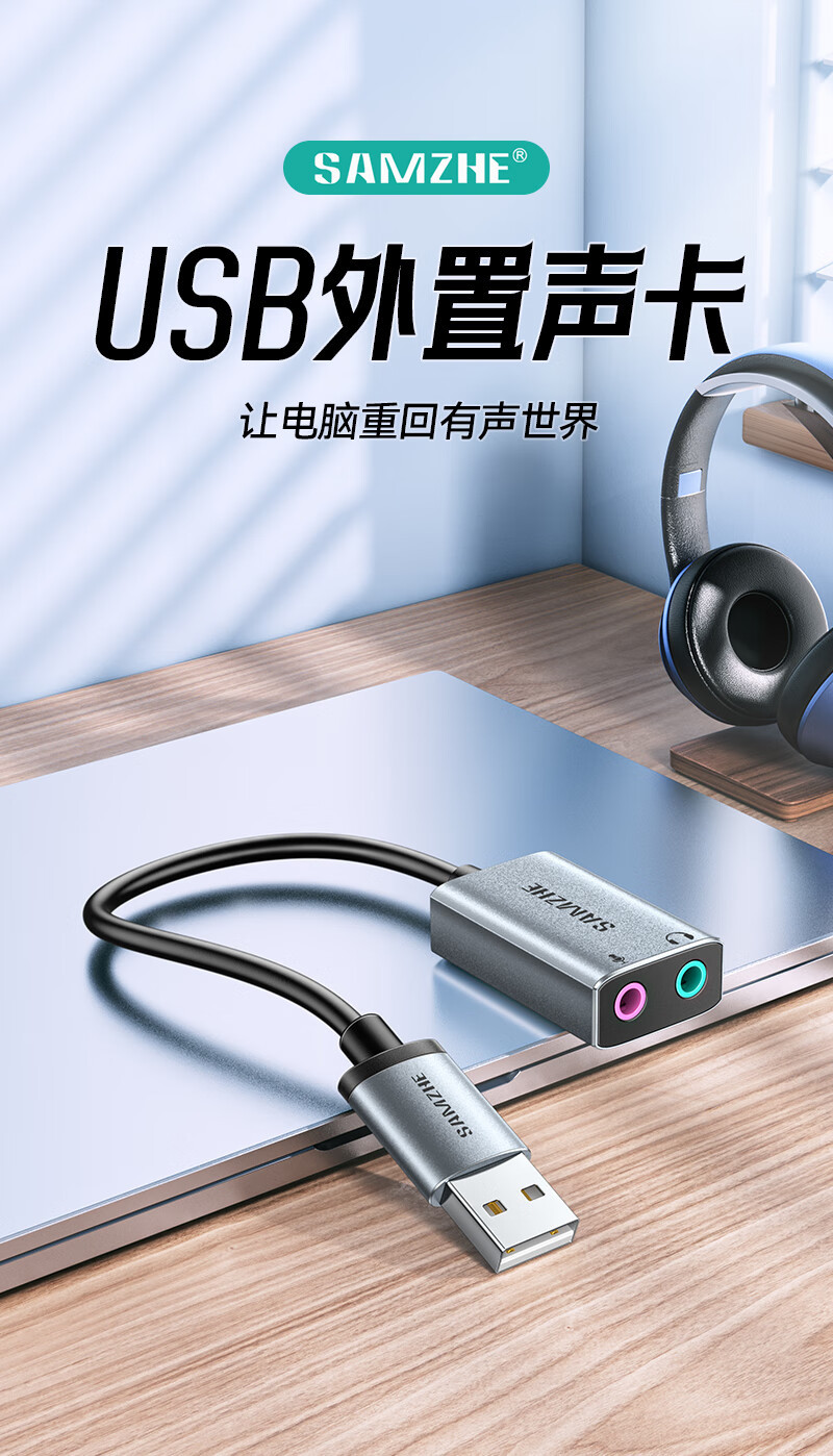 Samzhe USB внешний звуковой адаптер, USB на 3.5 мм аудиокабель, конвертер для наушников