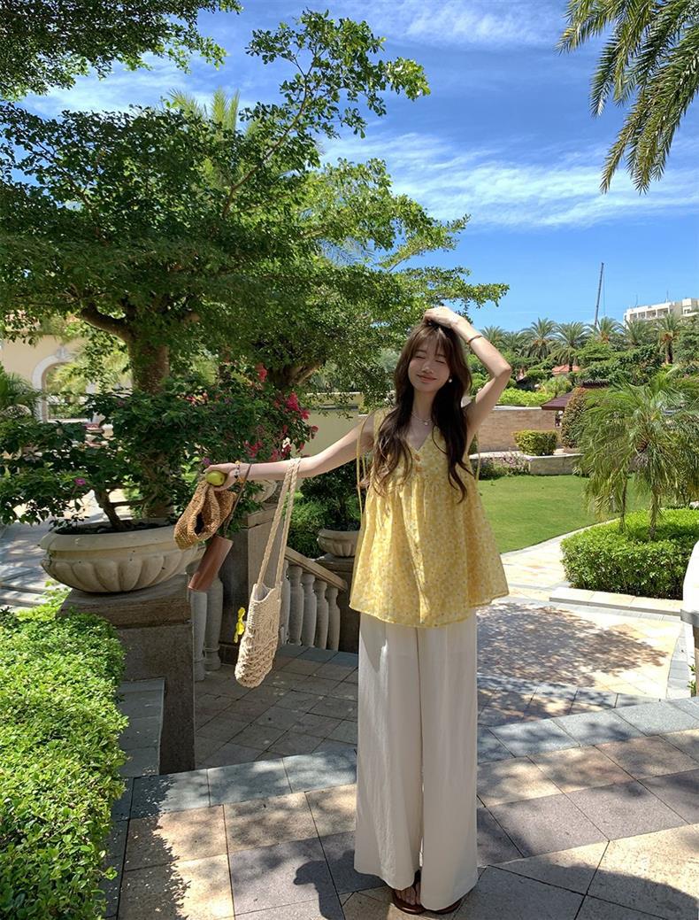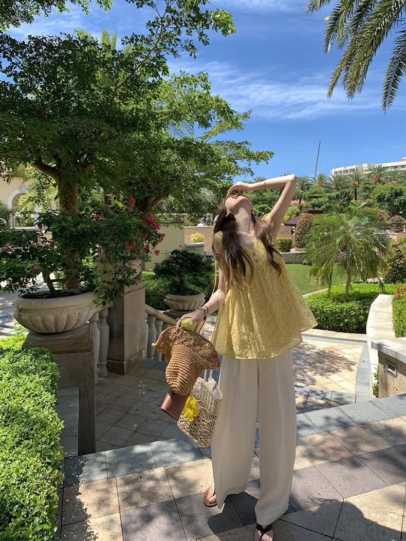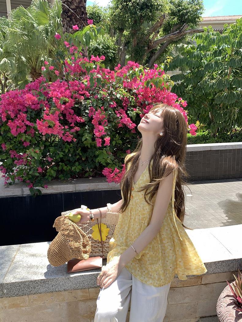 Корейский новый стиль 2025 года, летняя легкая безрукавка с цветочным узором и A-образным подолом