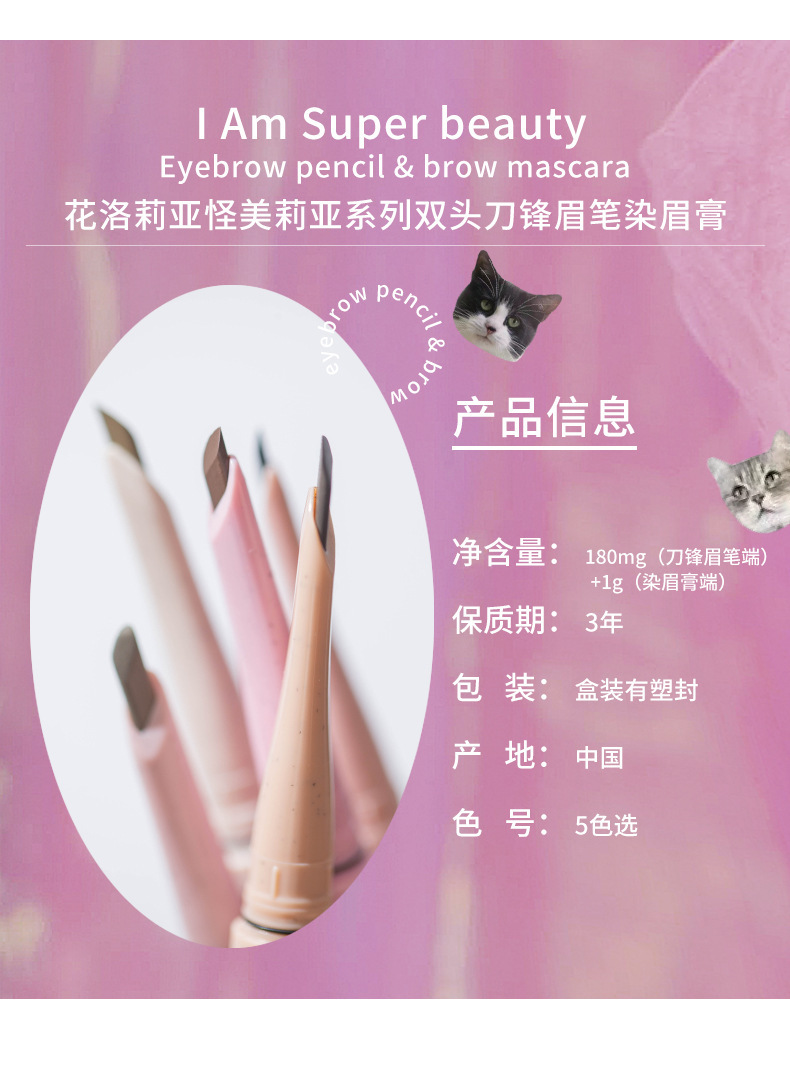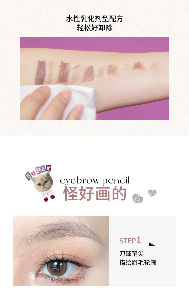 Карандаш для бровей Hualoria двусторонний крем для окрашивания бровей, стойкий к поту, водонепроницаемый и не размазывается