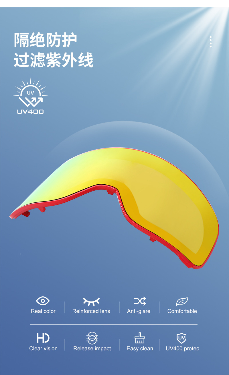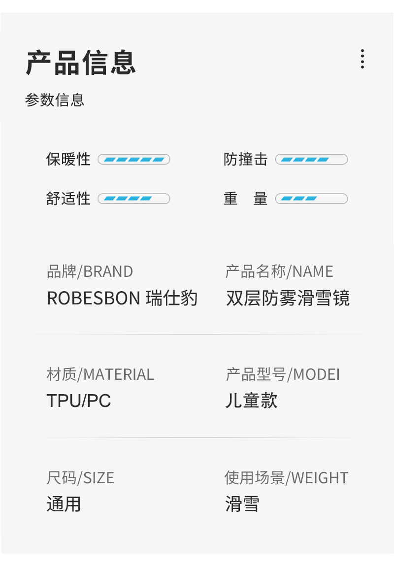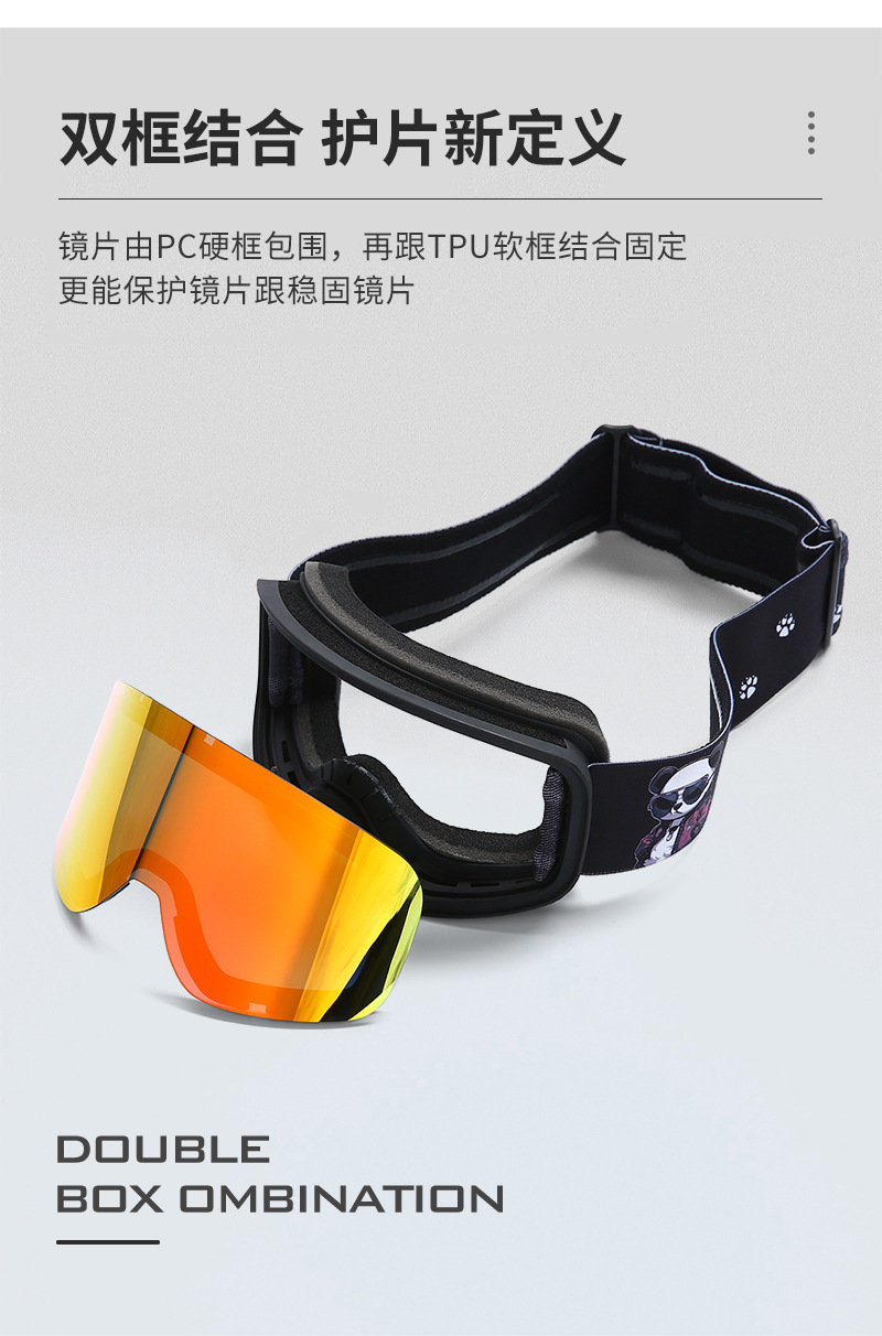 一:TPU镜框,REVO镀膜德国PC片,意大利双层防雾片,三层海绵,双面绒松紧带