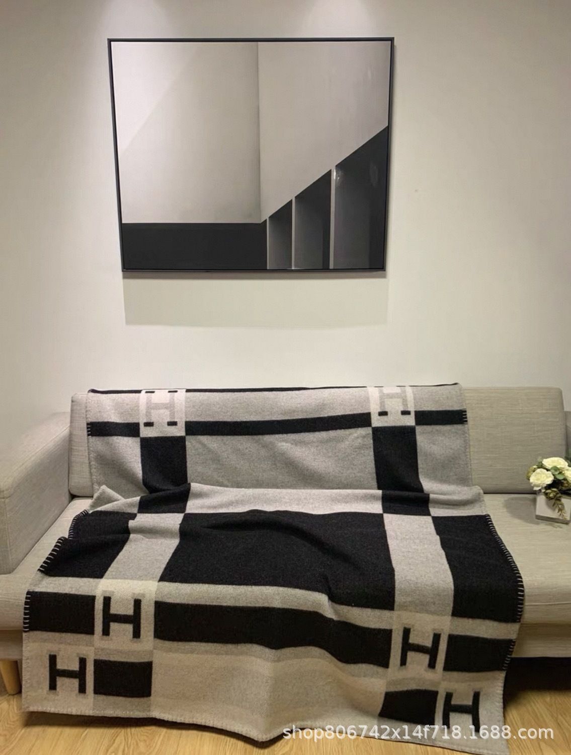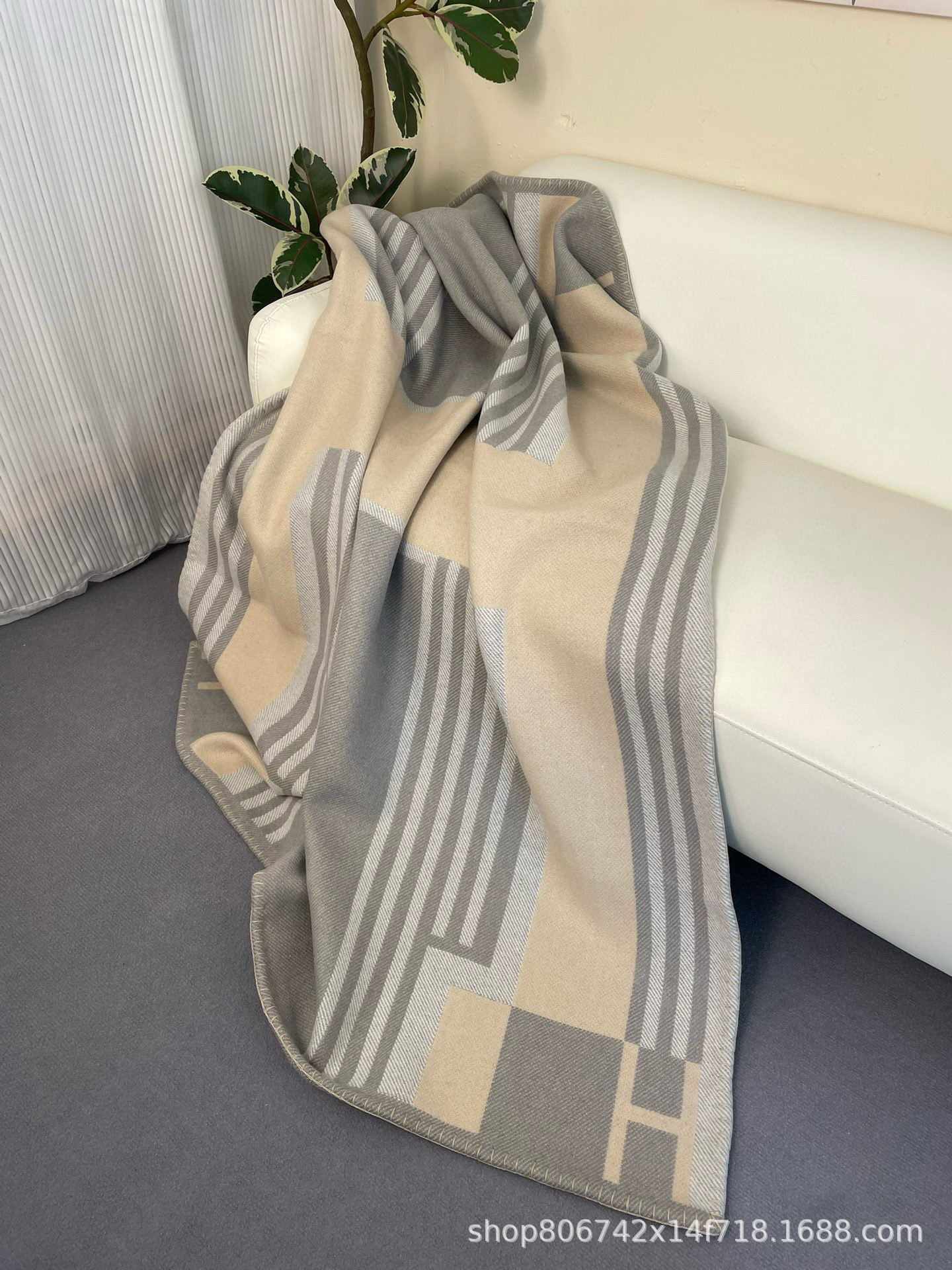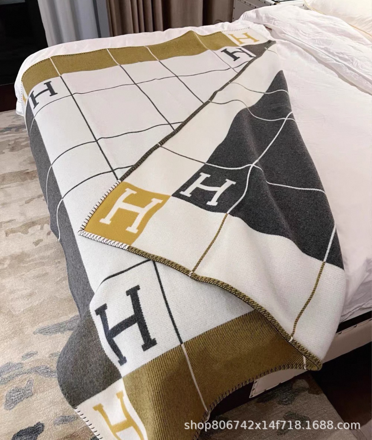 Одеяло из шерсти и кашемира с буквой H, легкое, для дома