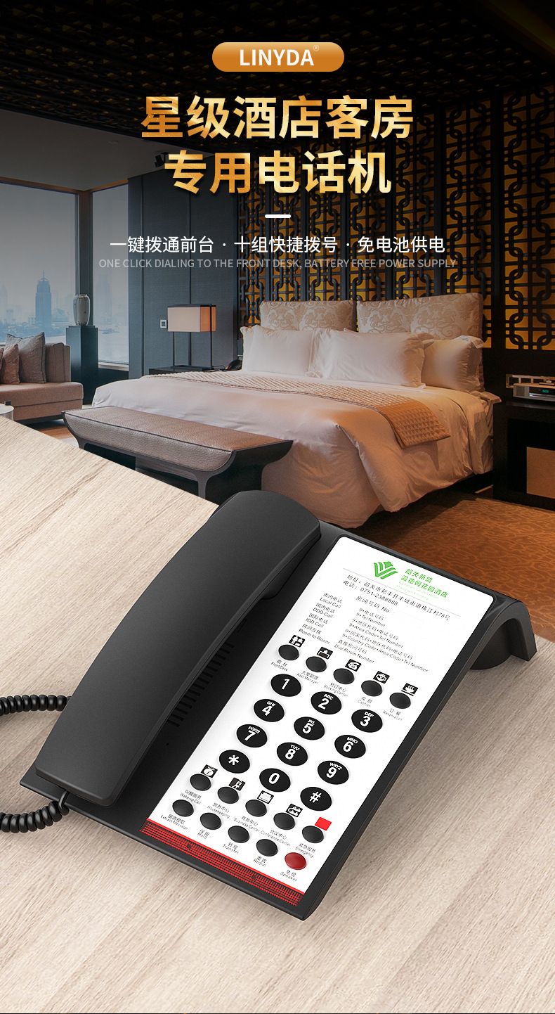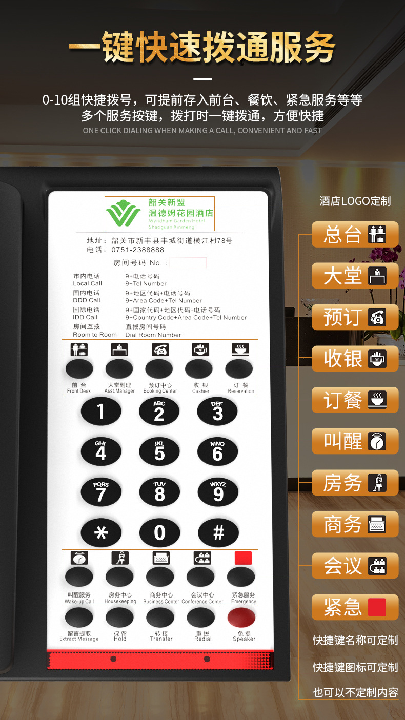 Телефон для гостиничного номера с одним нажатием набора эксклюзивная печать логотипа для гостиниц, гостевых домов и клубов проводной