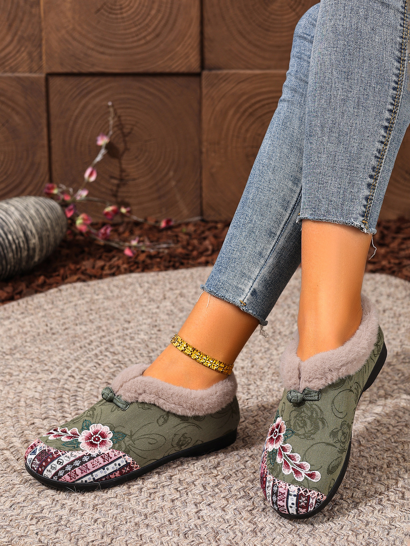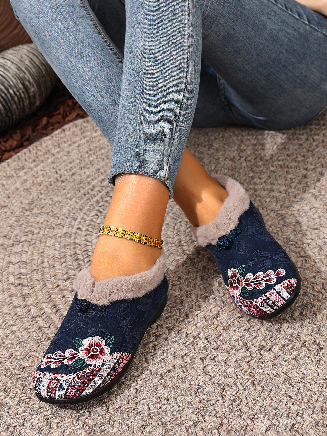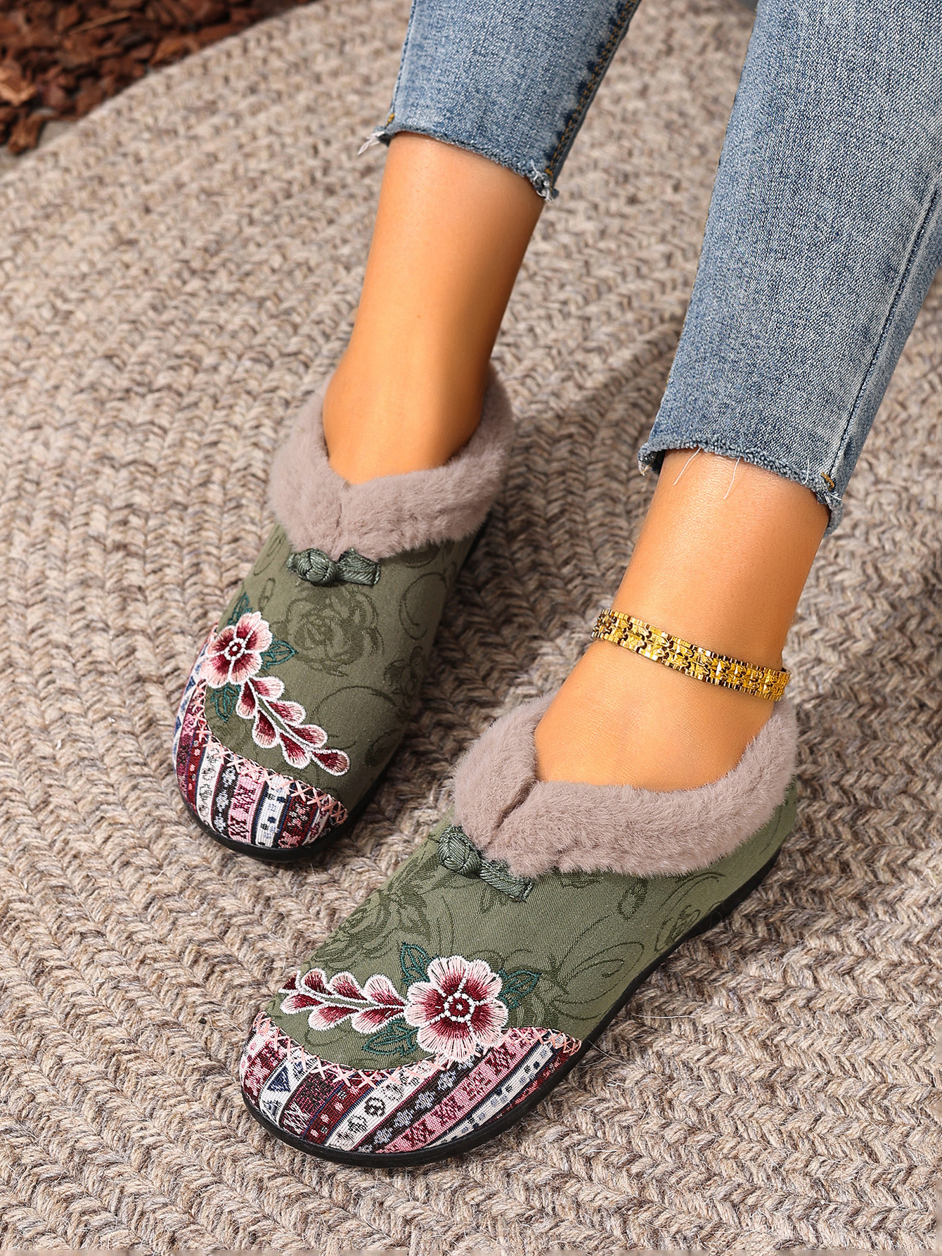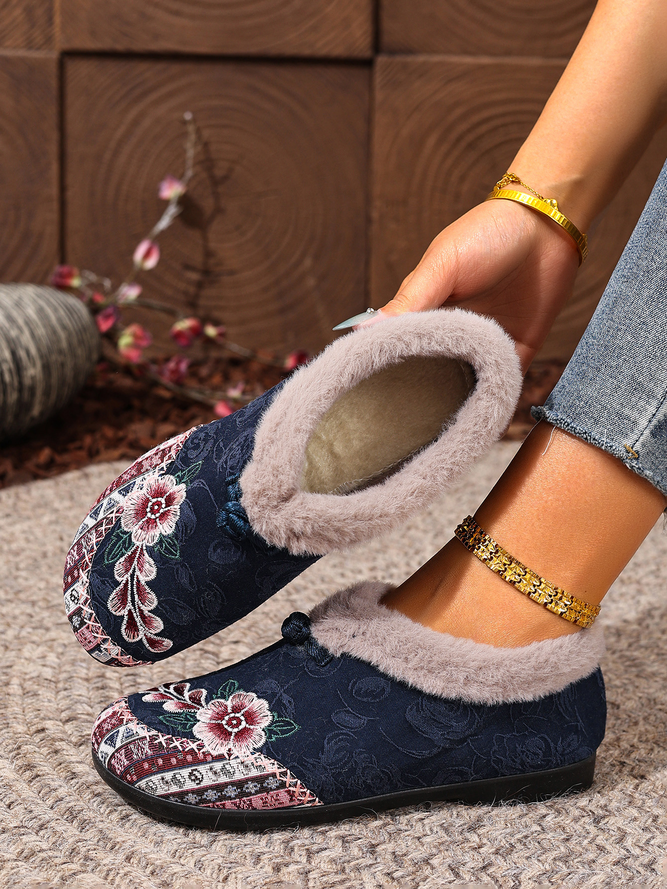 Хлопковые обувь для пожилых, вышитые тапочки с пакетом, теплые и комфортные, народный стиль