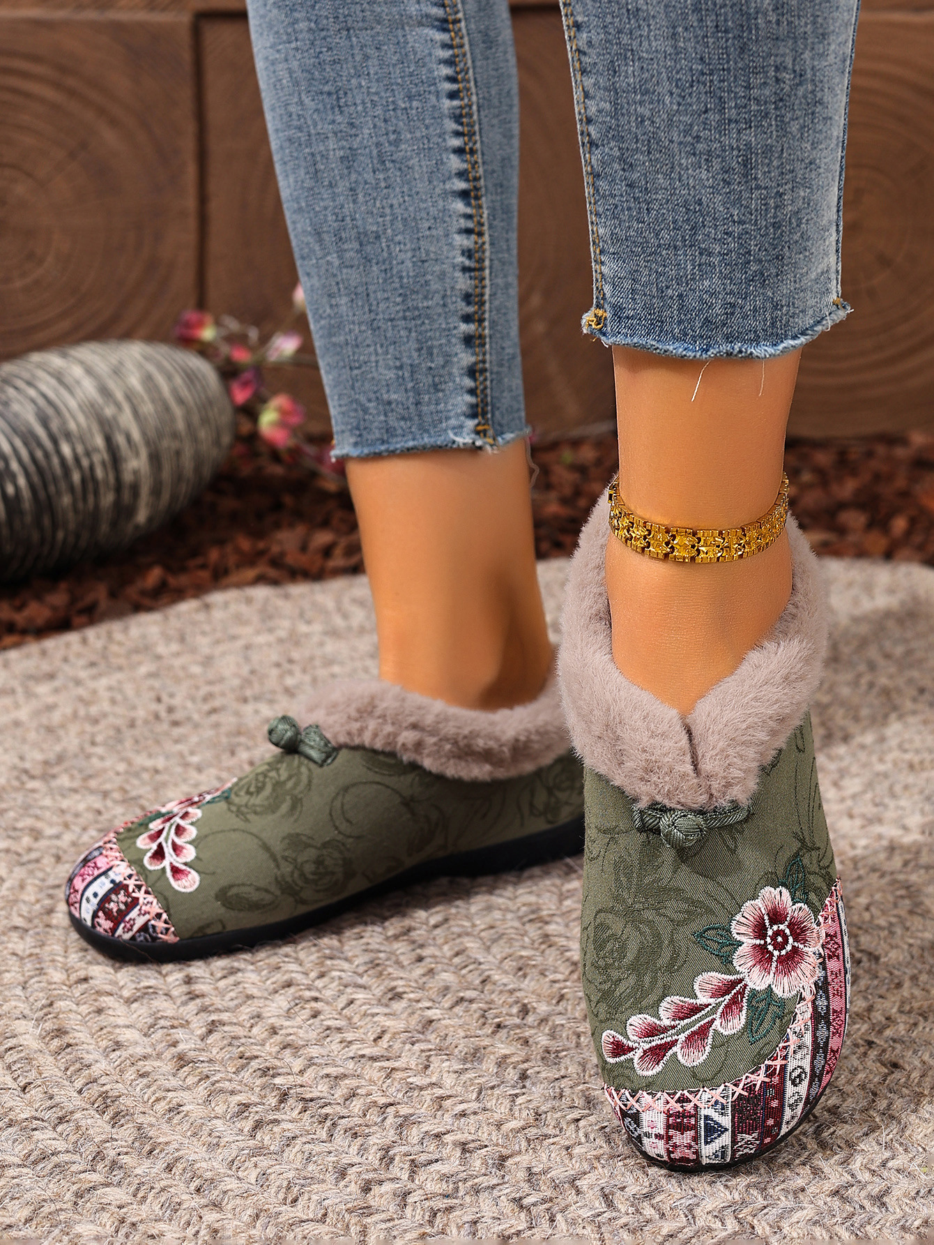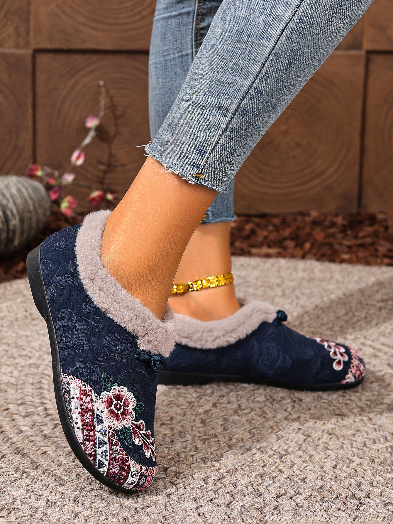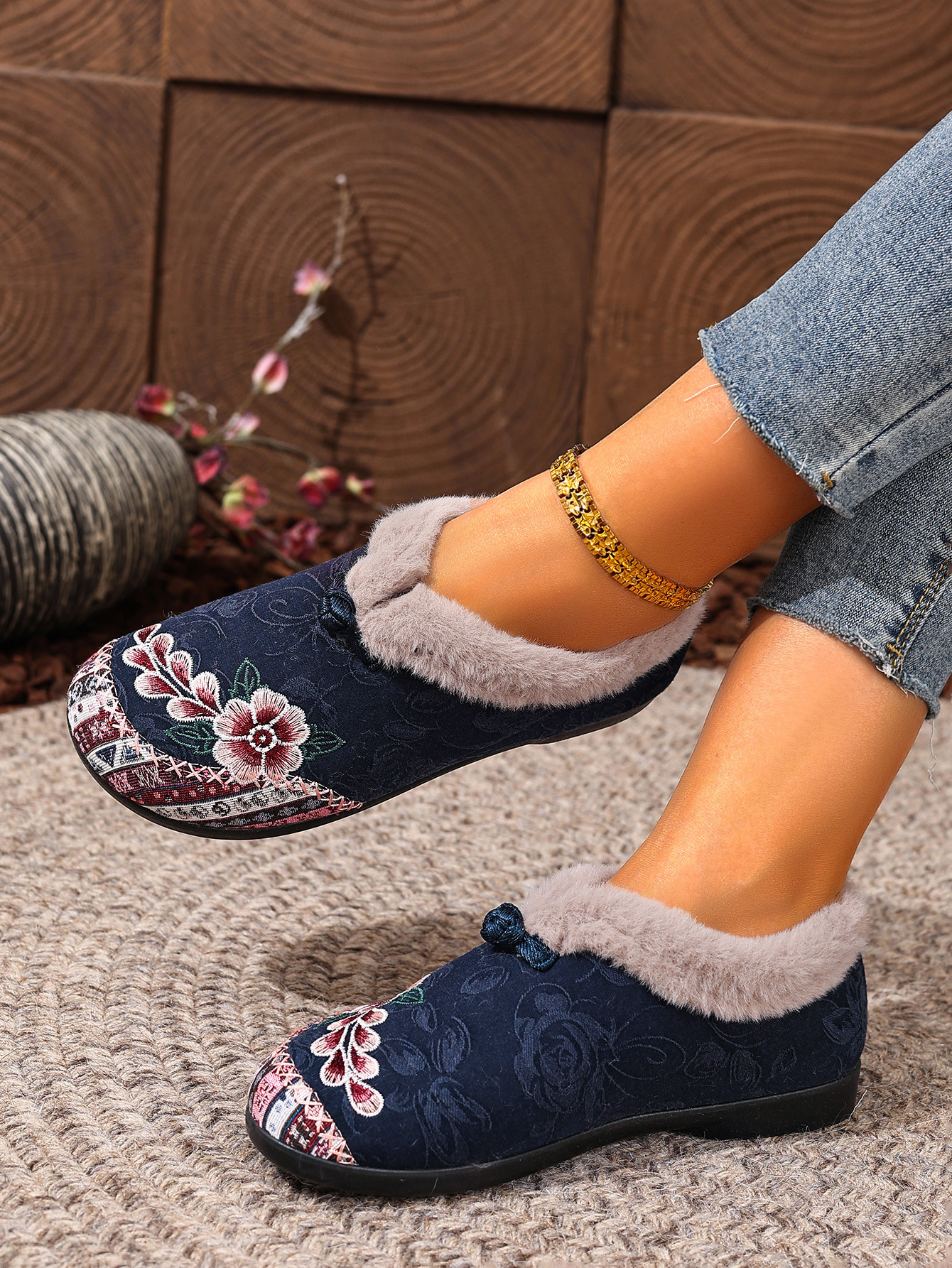 Хлопковые обувь для пожилых, вышитые тапочки с пакетом, теплые и комфортные, народный стиль