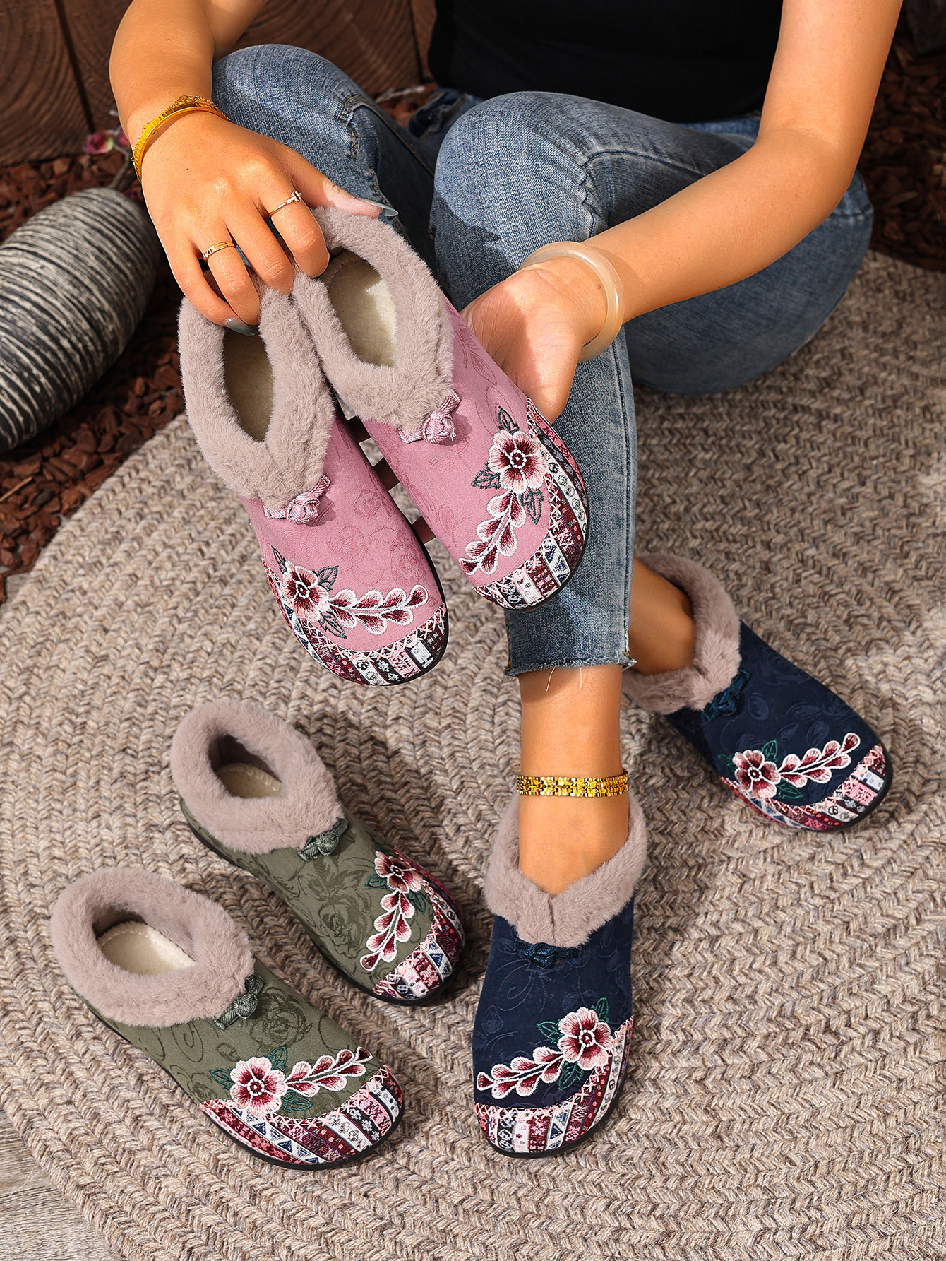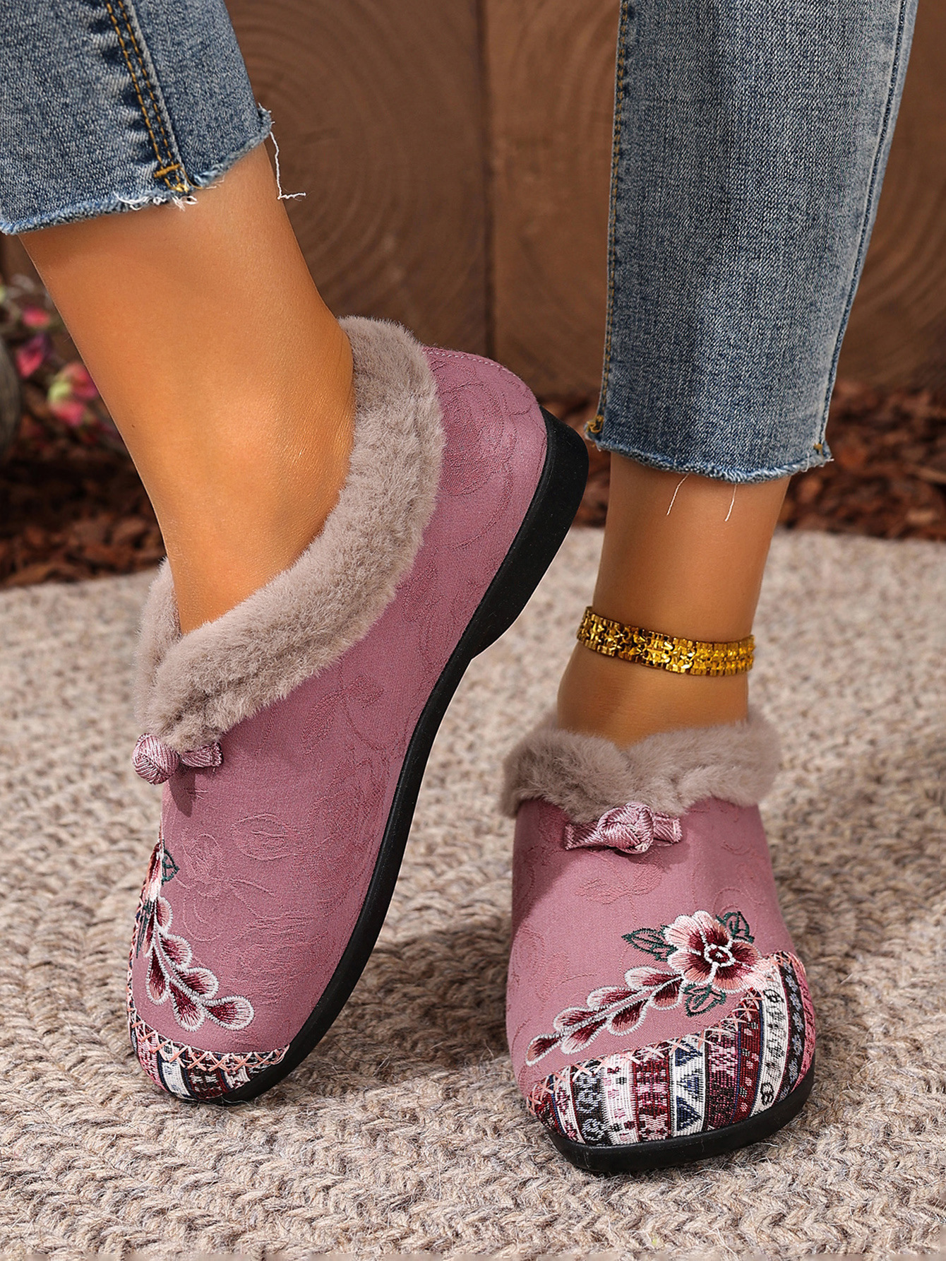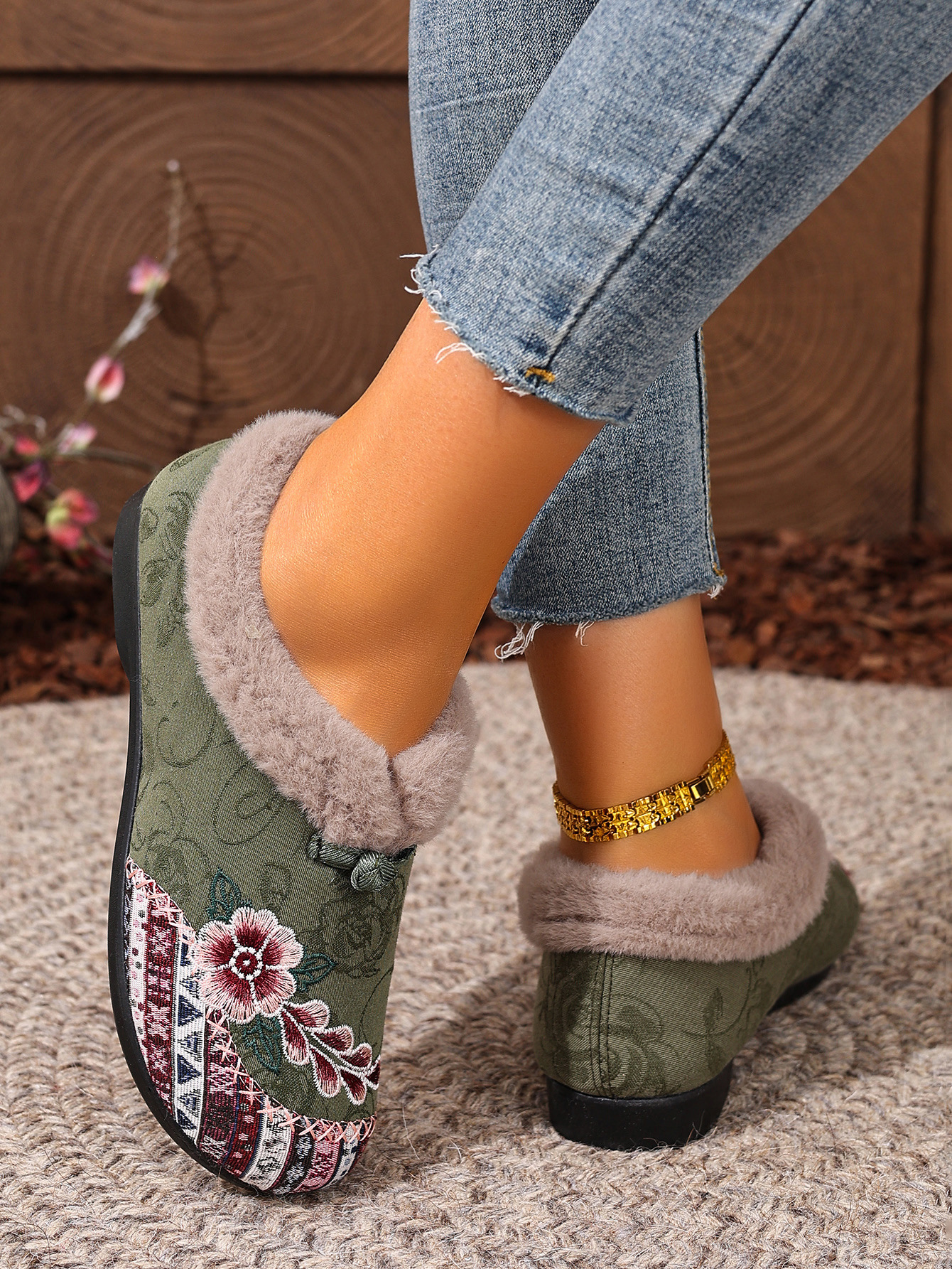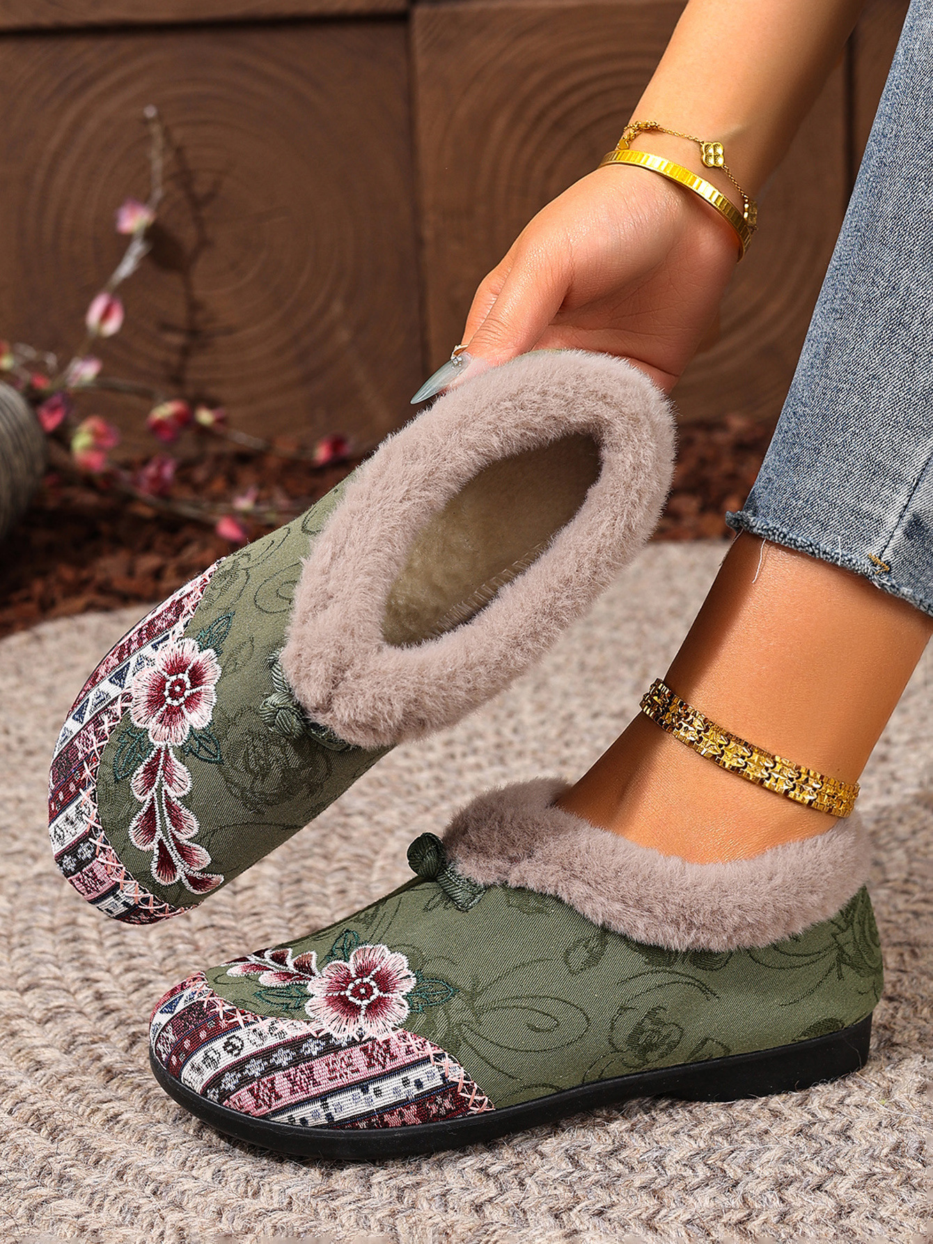 Хлопковые обувь для пожилых, вышитые тапочки с пакетом, теплые и комфортные, народный стиль