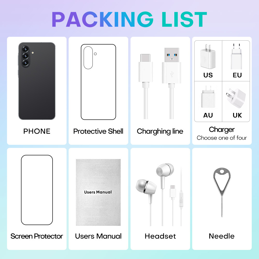 .出货标准:手机+包装盒+说明书+充头器