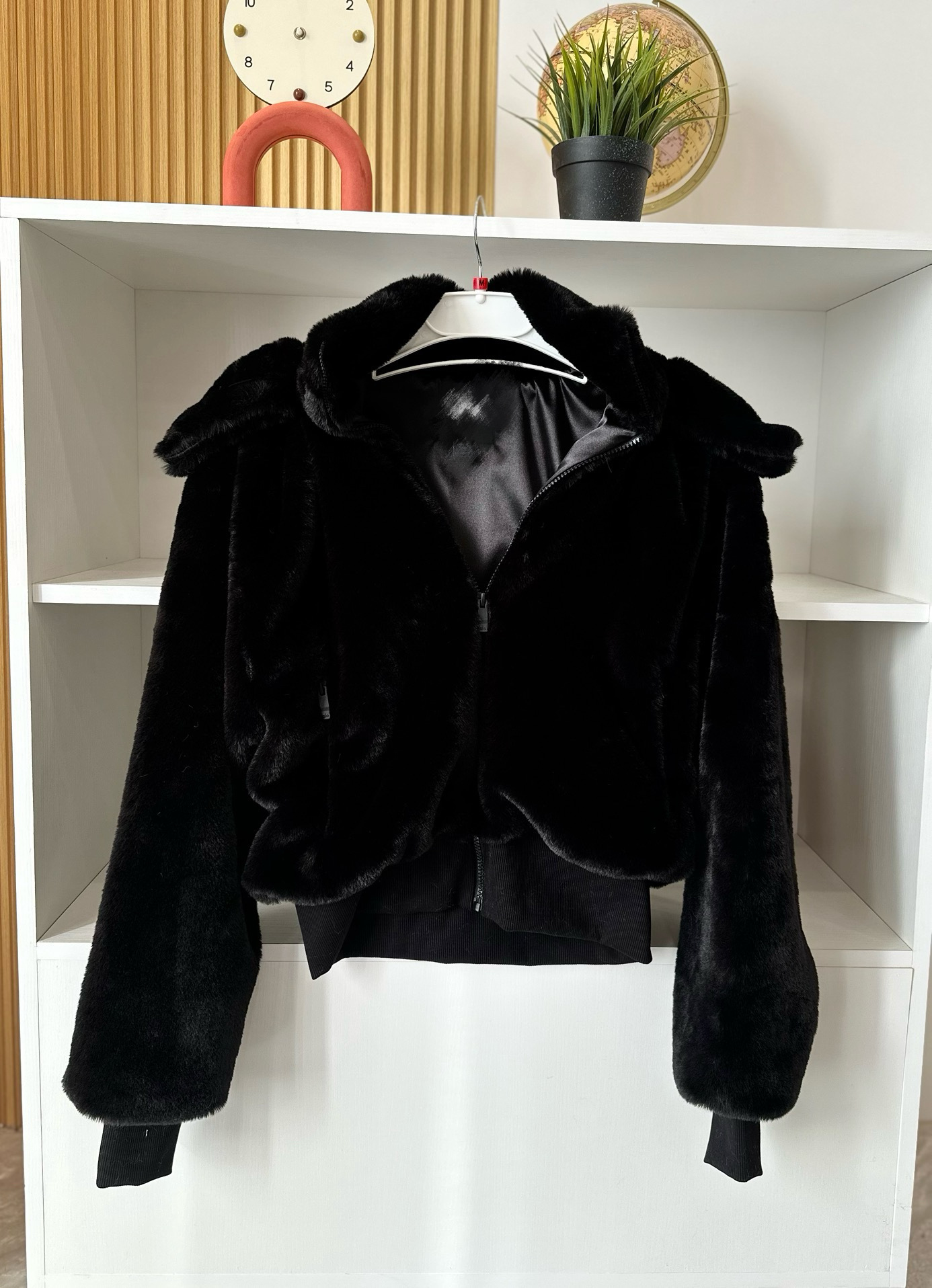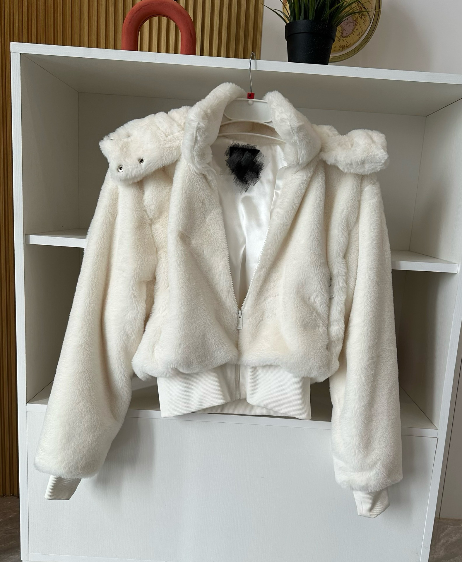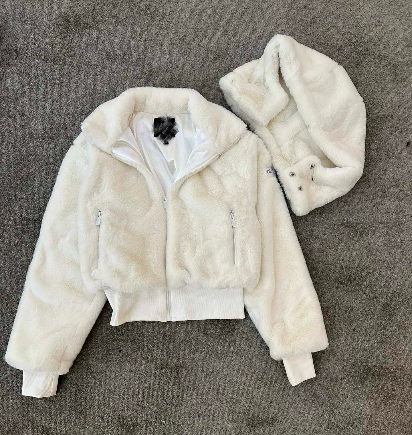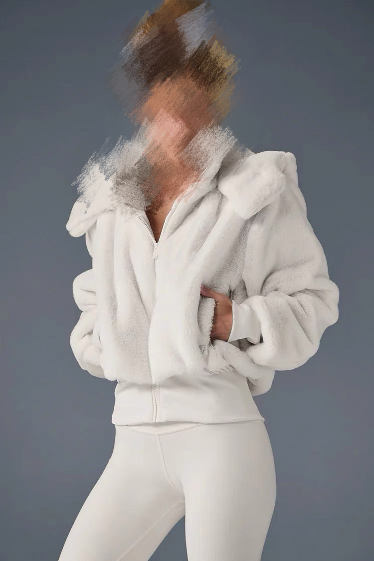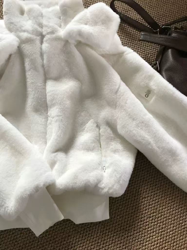 Куртка в стиле Кендалл Дженнер мягкая теплая короткая из кроличьего меха с detachable искусственным меховым капюшоном для осени и зимы