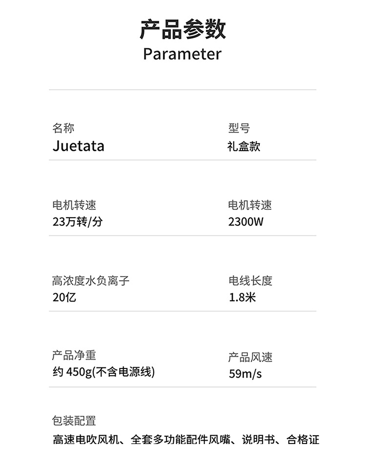 ![]() | High-grade gray [1 billion moisturizing negative ions] single air nozzle + wall bracket + constant temperature hair care | ¥99.99 / ≈ 1 216 ₽ | 4999 | 6087141847777 | |