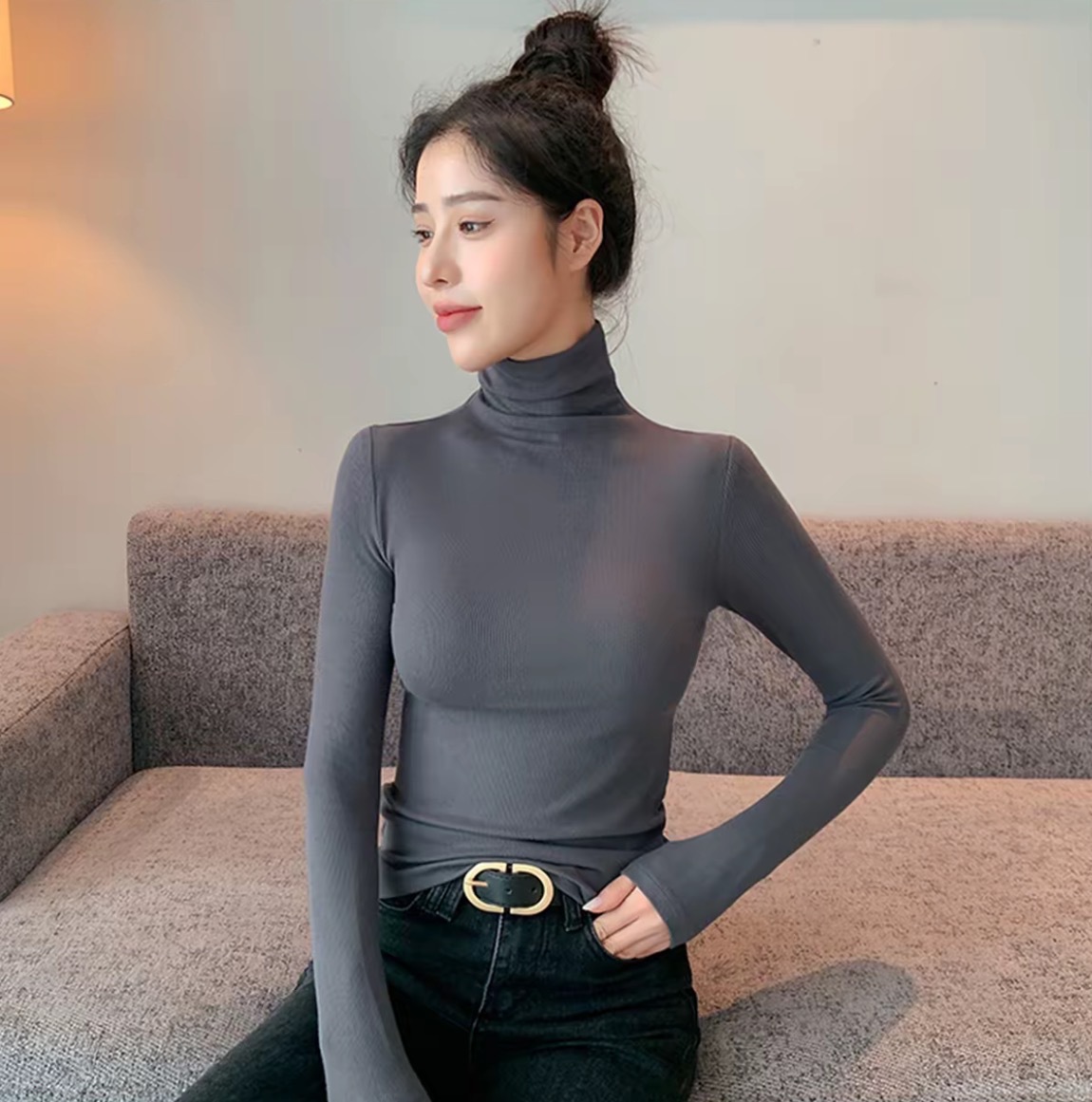 Темно-серая базовая футболка с высоким воротником для женщин, ранняя весна, новый стиль, универсальная