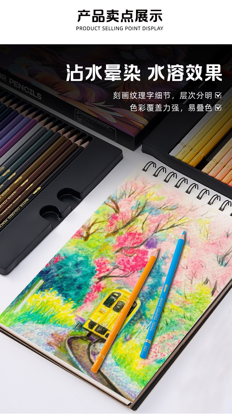 Кросс-бордерные водорастворимые 48-цветные, 72-цветные цветные карандаши, подарочный набор, профессиональная ручная граффити живопись, готовая к продаже