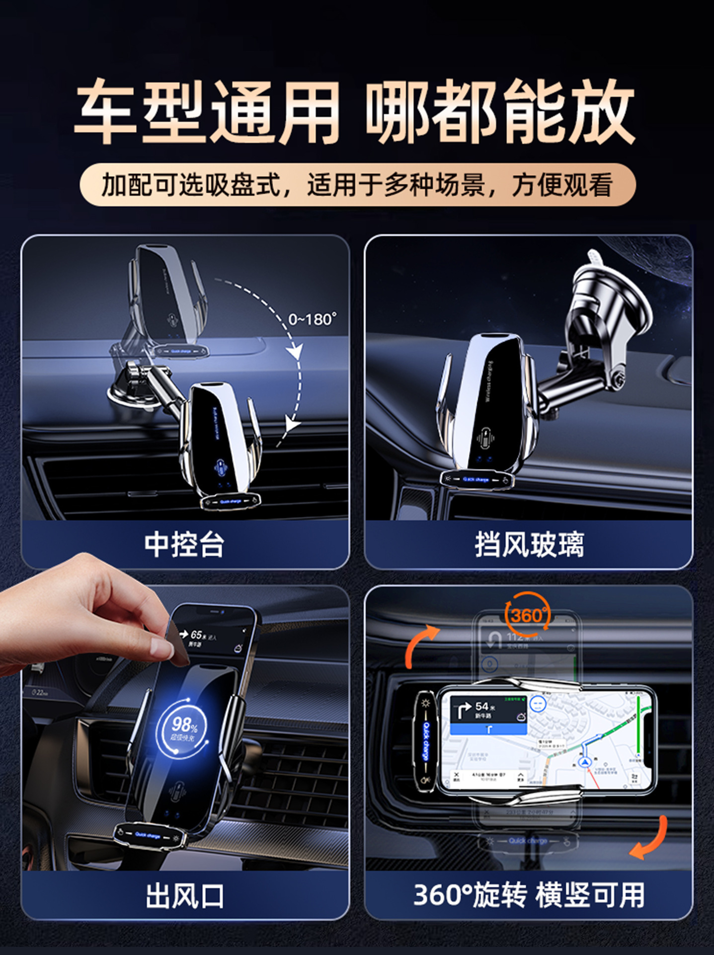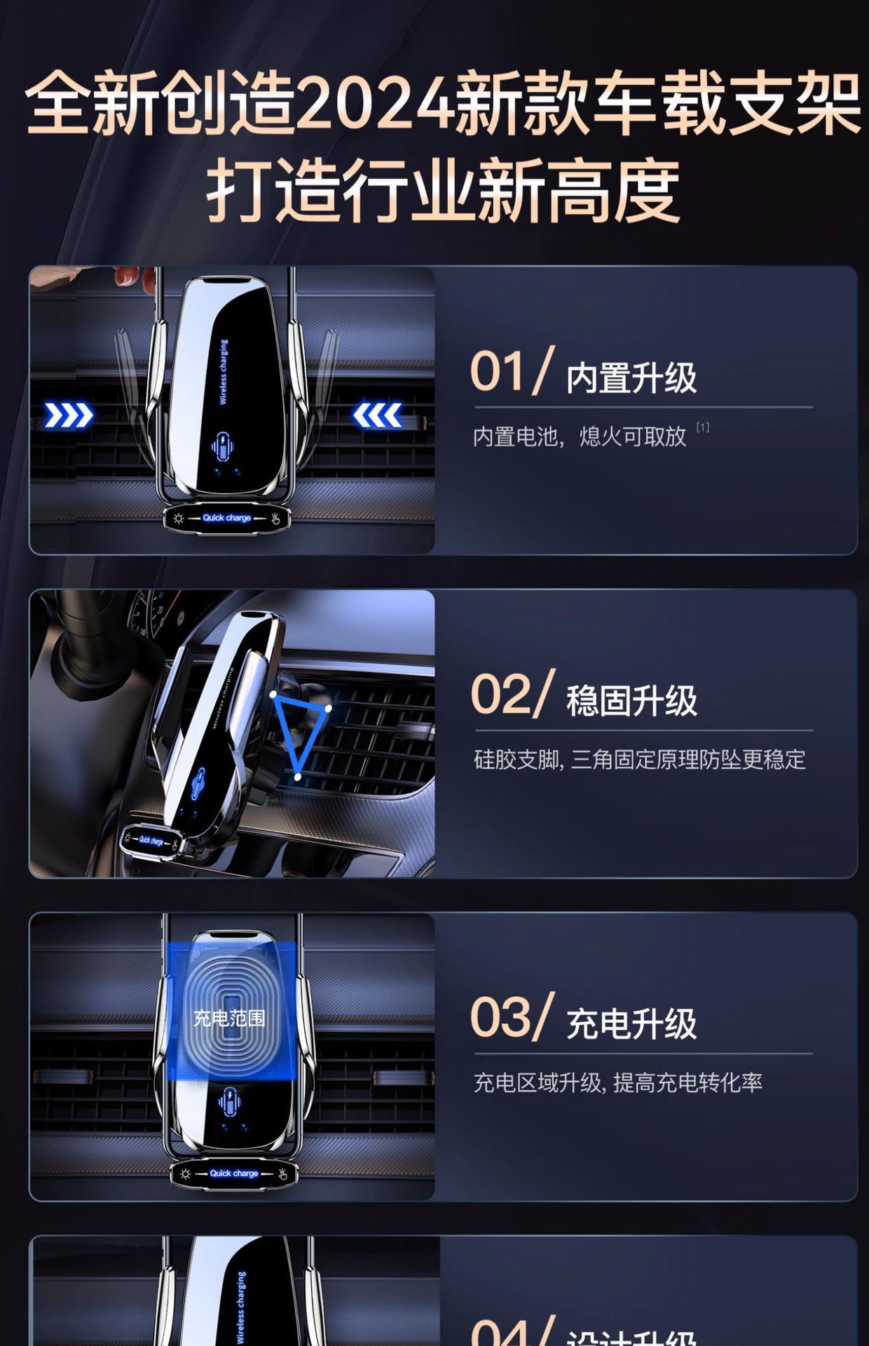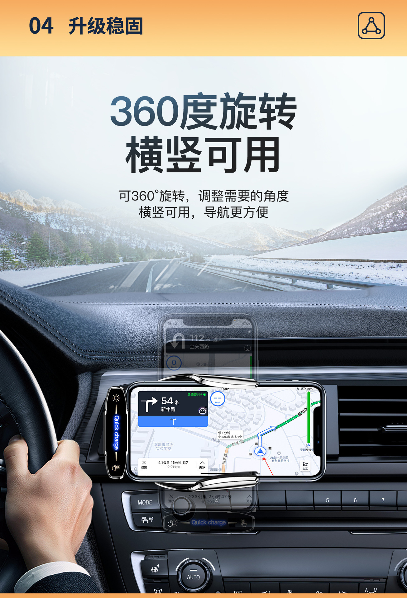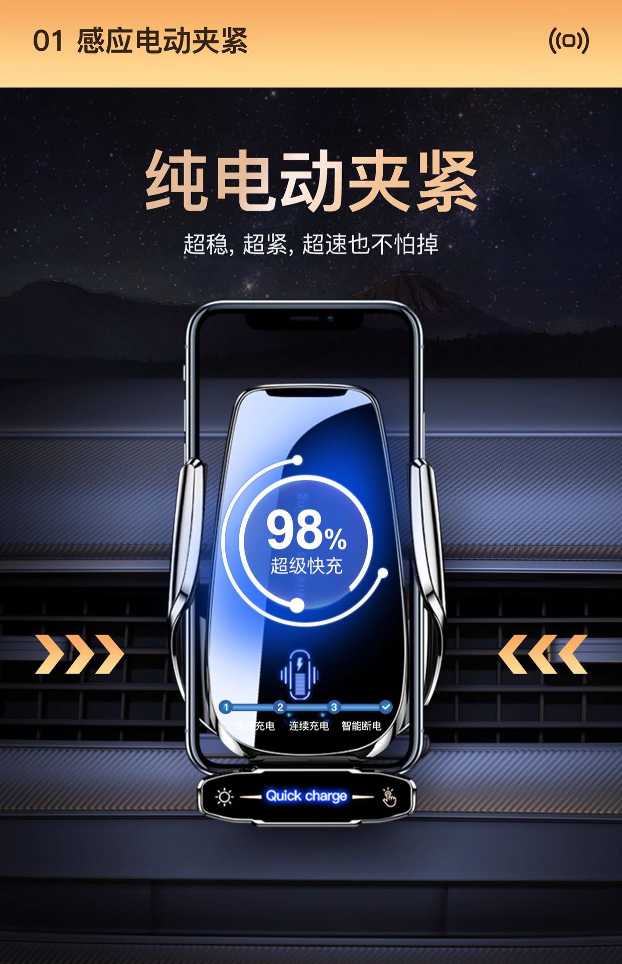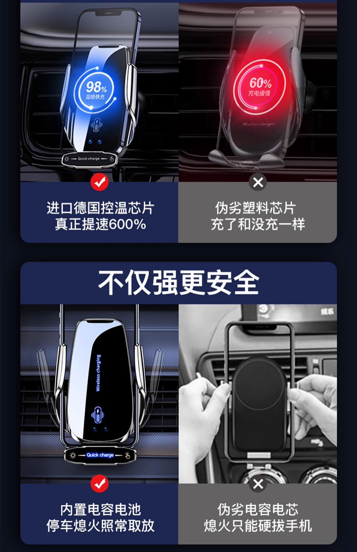Беспроводное зарядное устройство для автомобиля Держатель для мобильного телефона Навигация Высококачественный Полностью автоматический Индукция Черная технология Новая модель