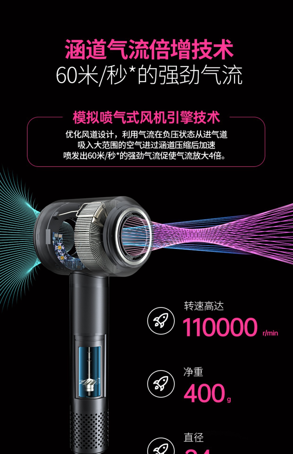 Фен Huaqiangbei, высокоскоростной, с негативными ионами, мощный, безлопастной