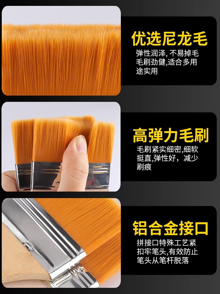 Желтая нейлоновая кисть, набор кистей, барбекю, живопись, нейлоновая кисть, художественная кисть для студентов, масляная живопись, деревянная кисть