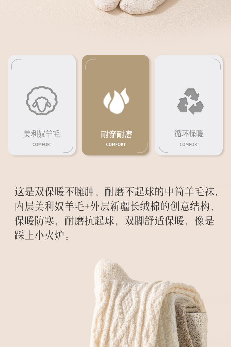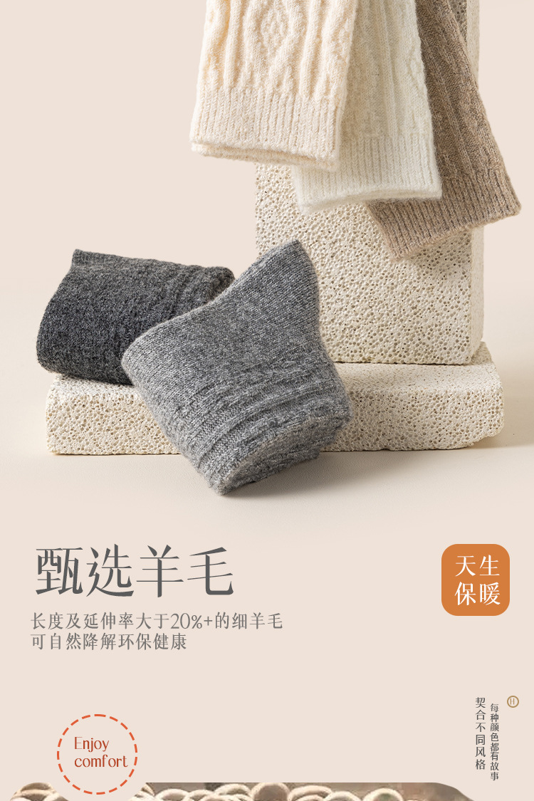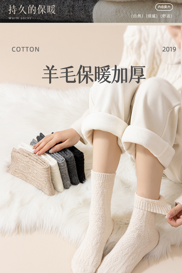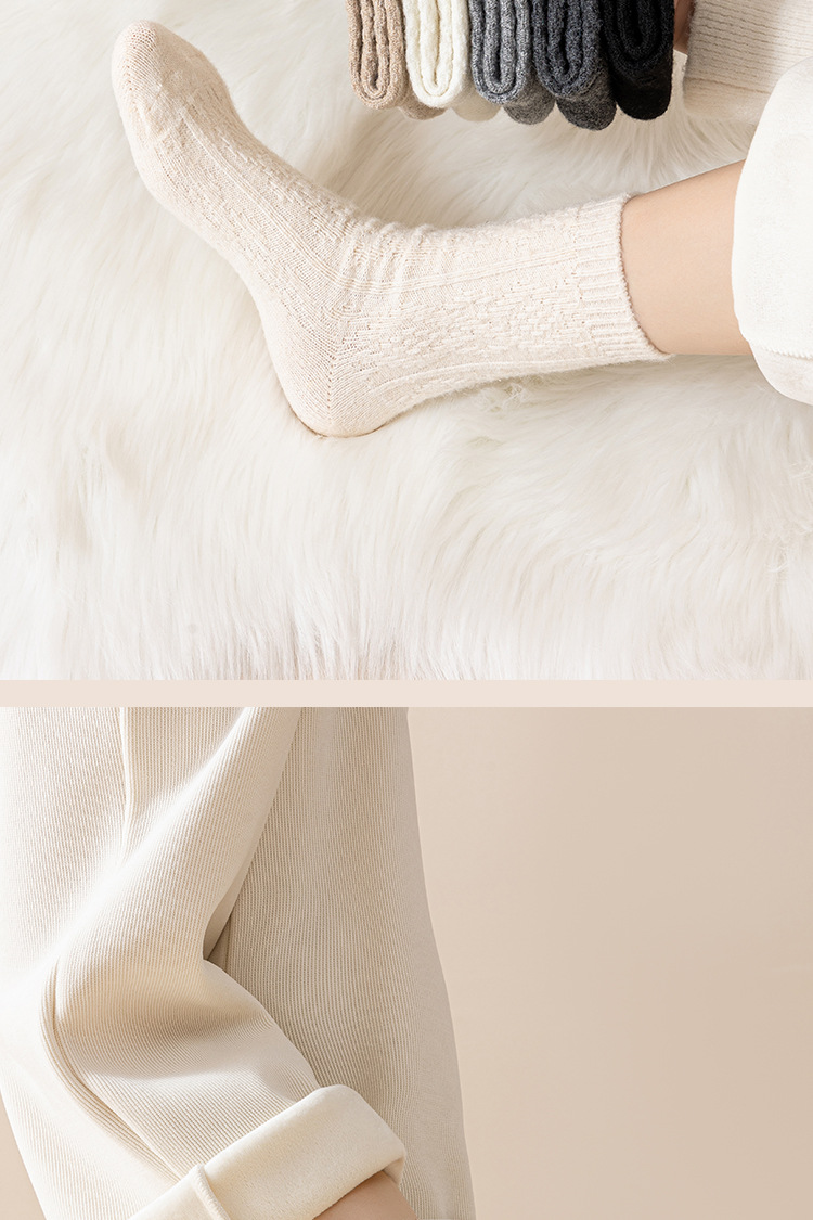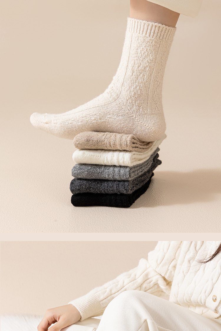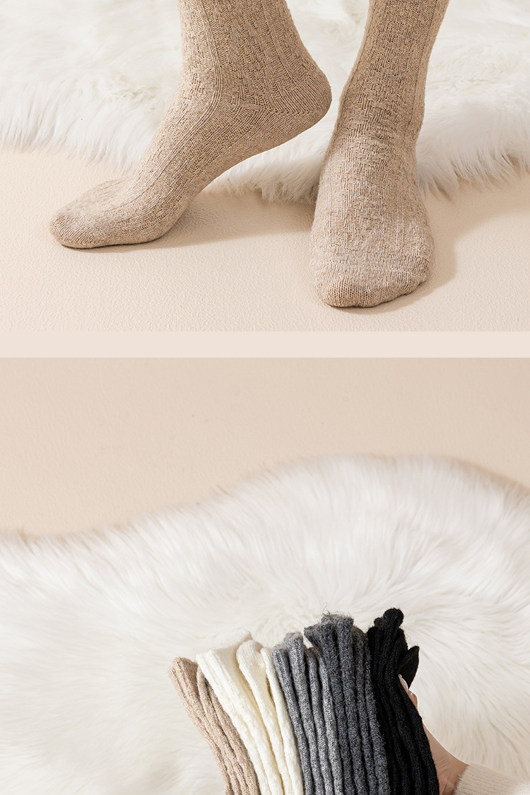 Утолщенные шерстяные носки для женщин осенью и зимой, теплые носки средней длины для зимнего периода