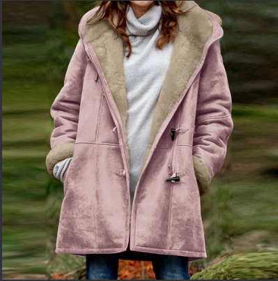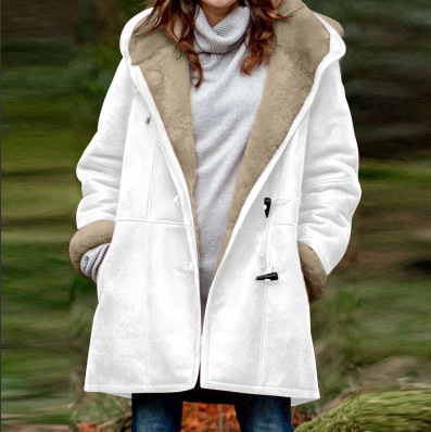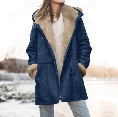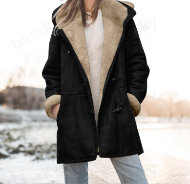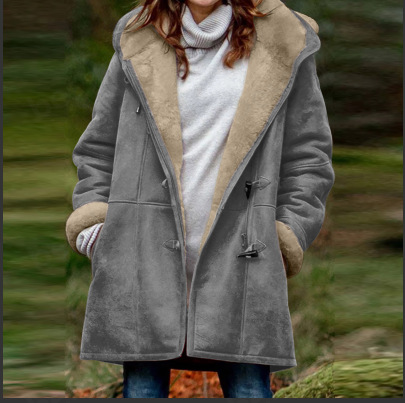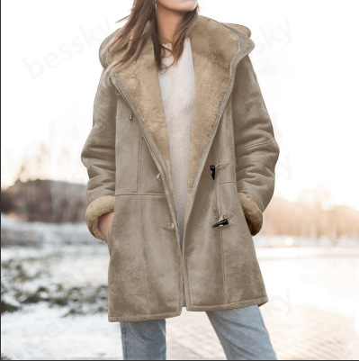 2025 Женская модная повседневная флисовая куртка средней длины с капюшоном