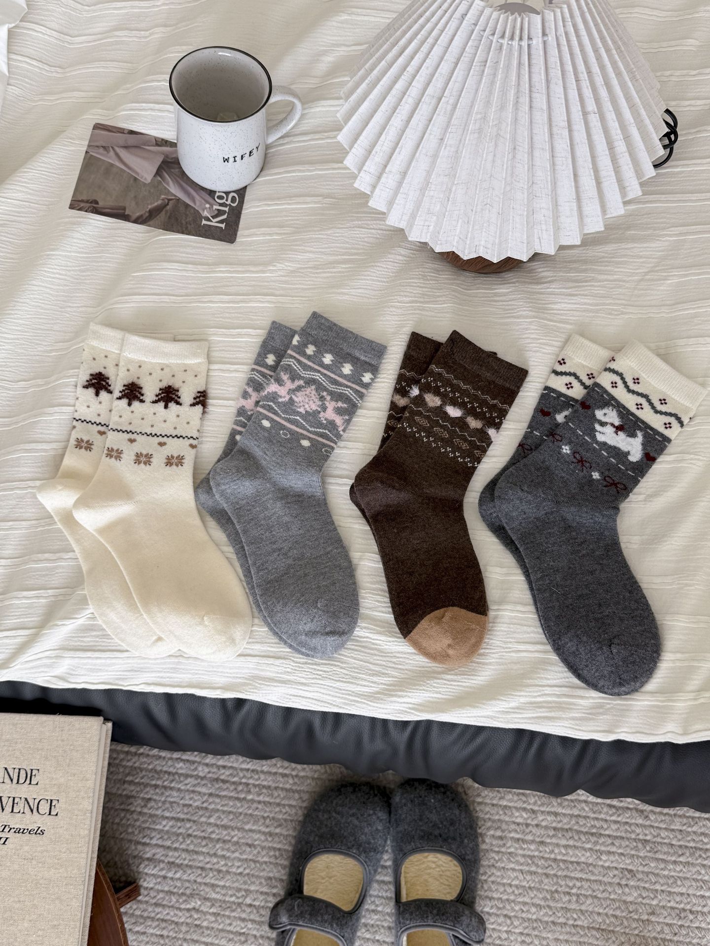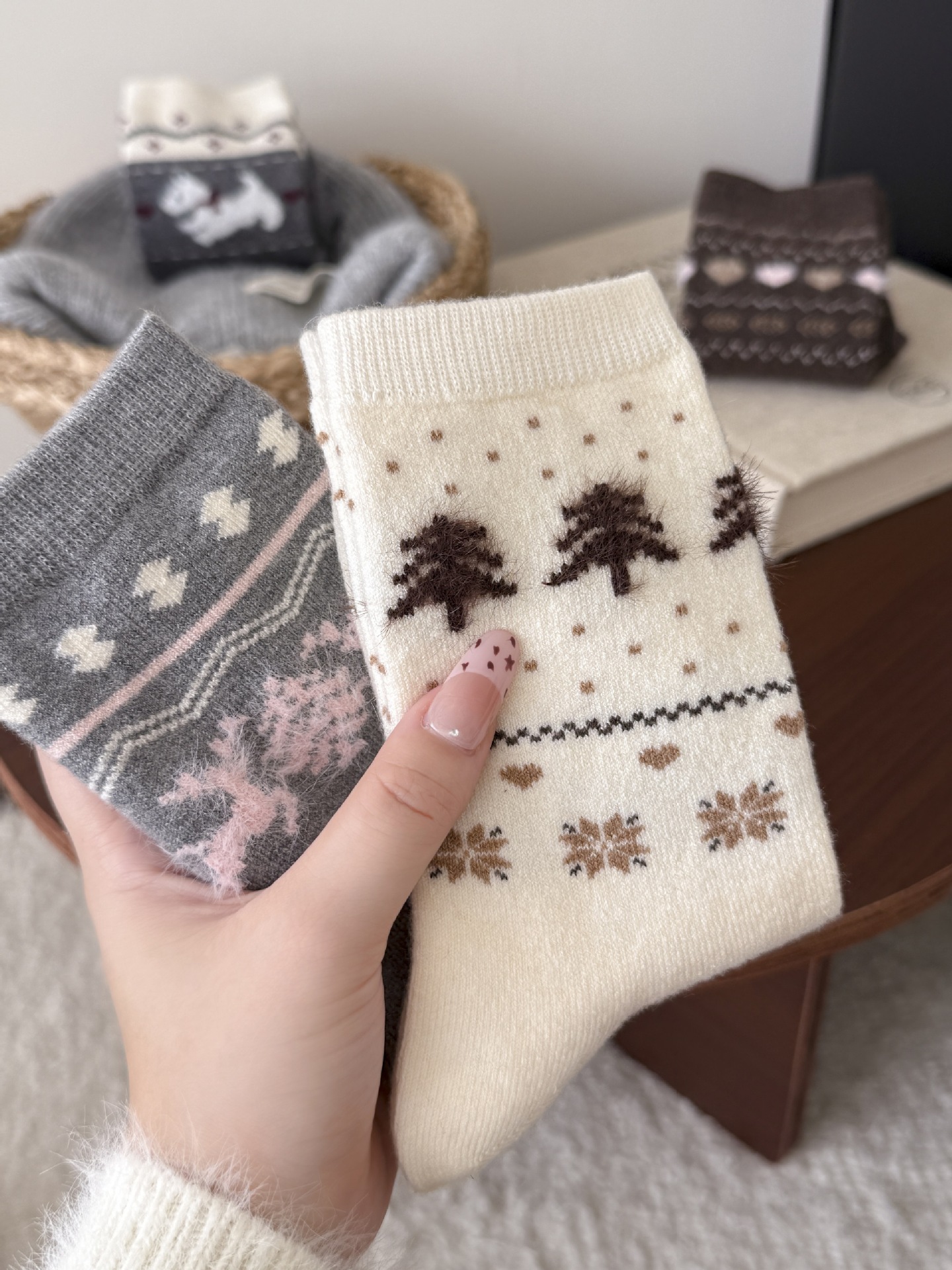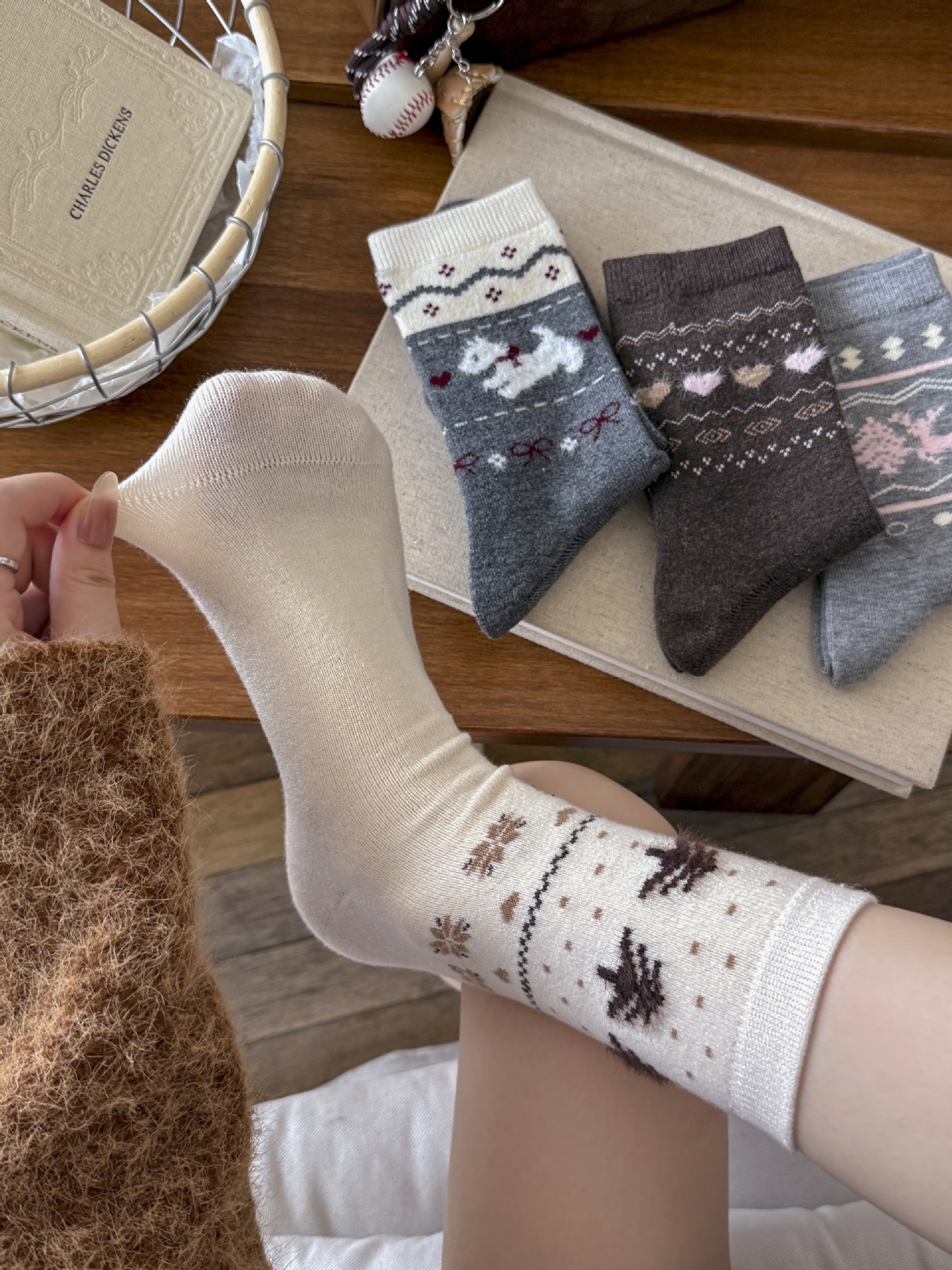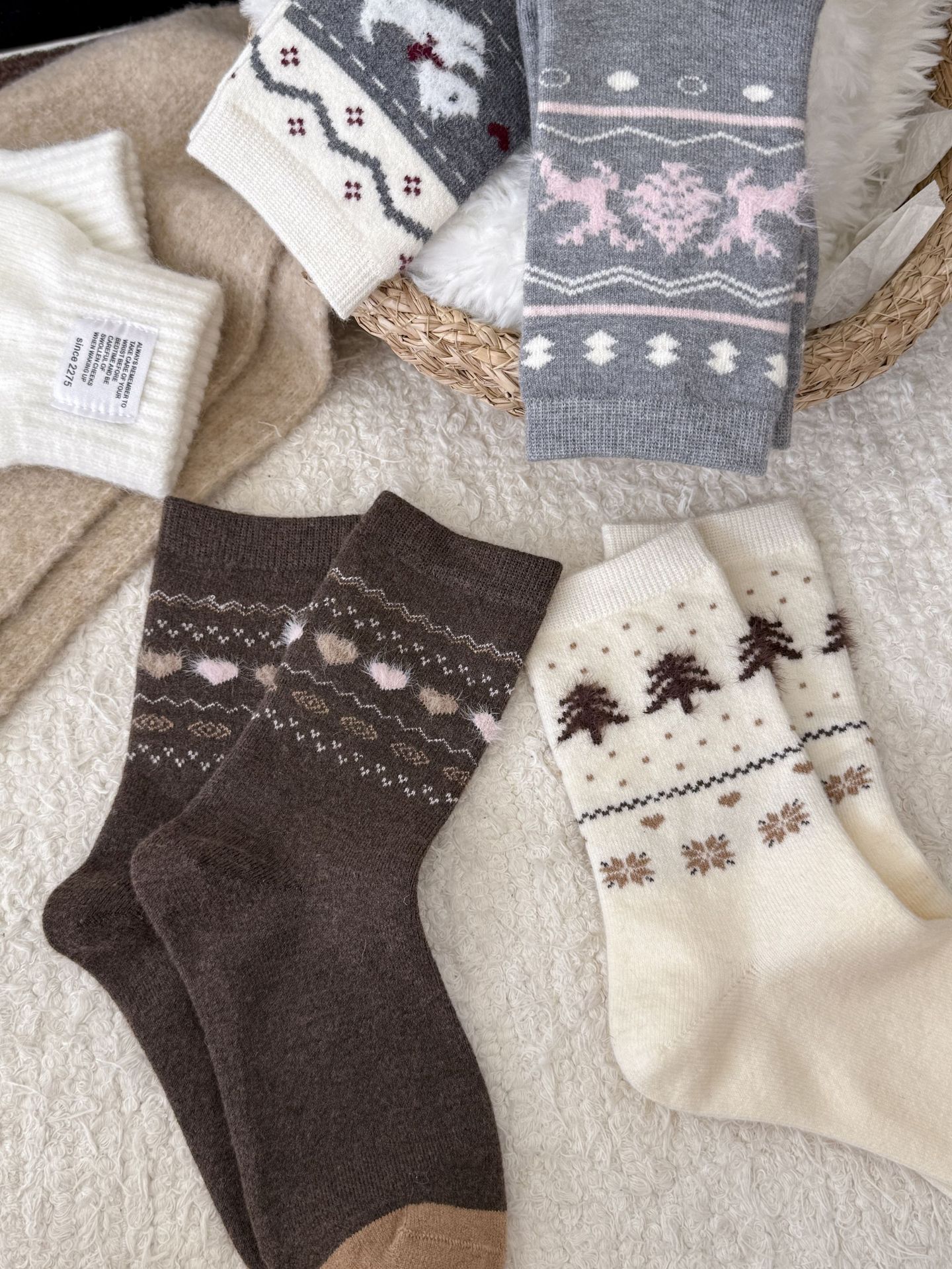 Утолщенные теплые носки в стиле Fair Isle для женщин, ретро носки с сердечком и щенком, носки средней длины для студентов