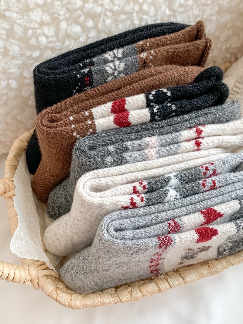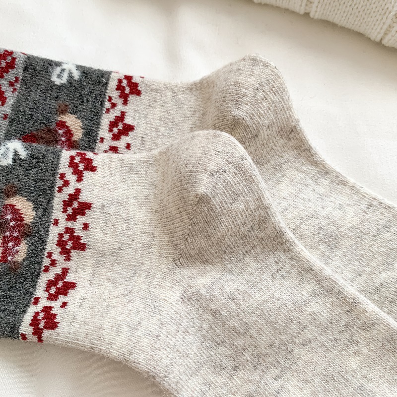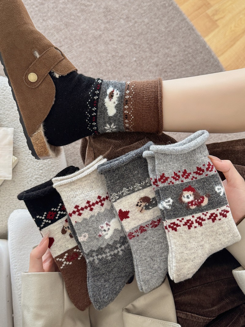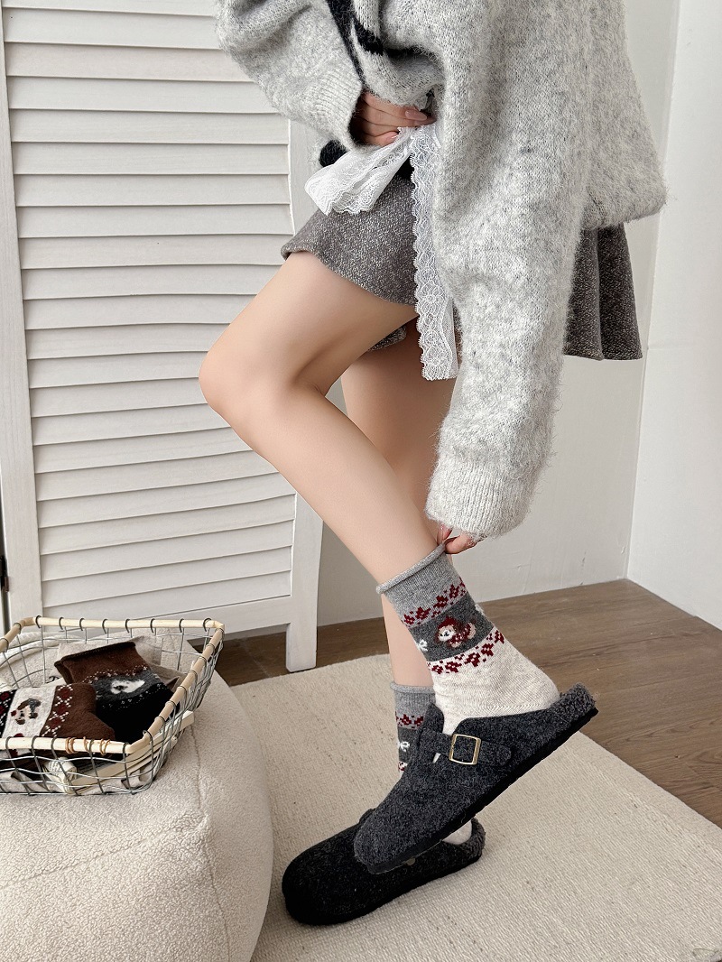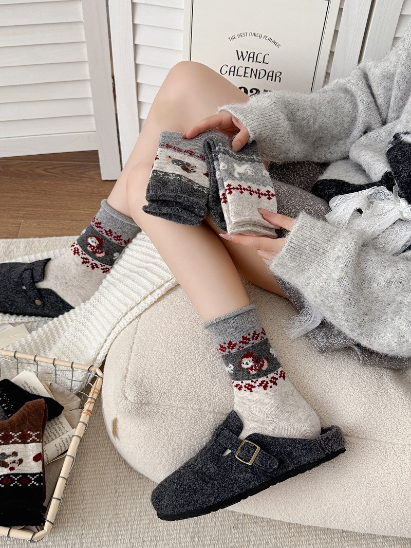 Носки из шерсти с рисунком Fair Isle для женщин, утолщенные теплые носки с флоком в японском ретро стиле с изображением щенка