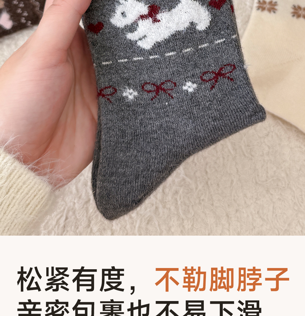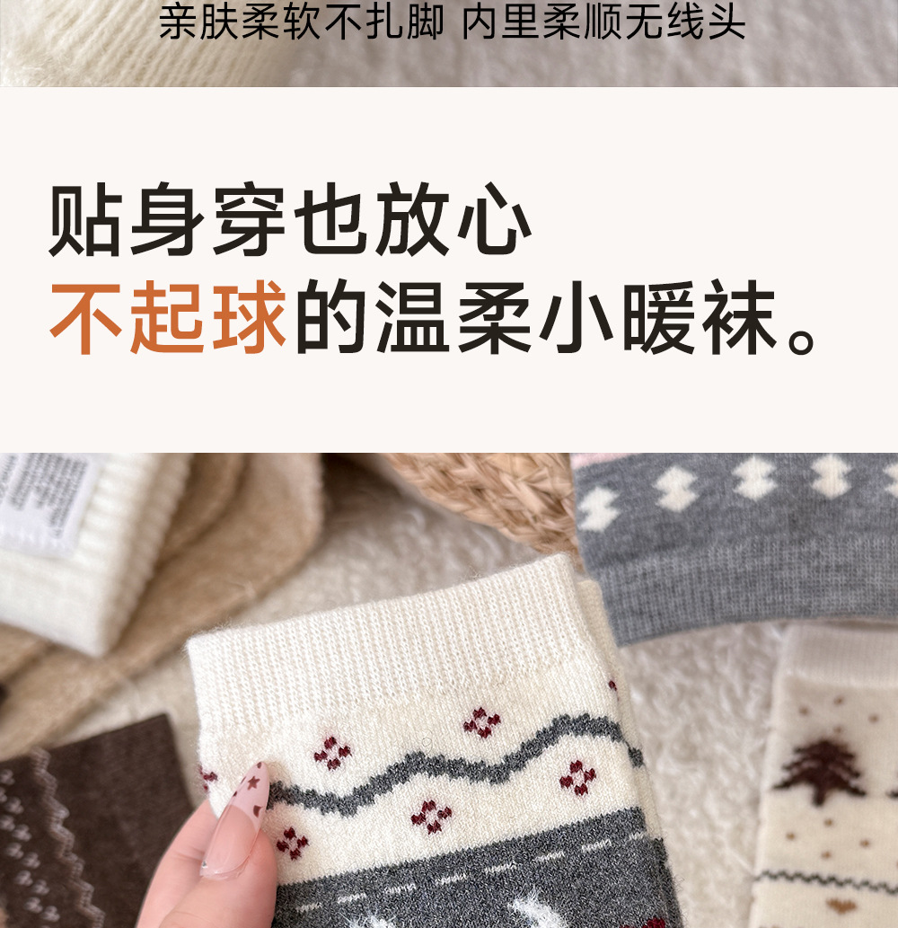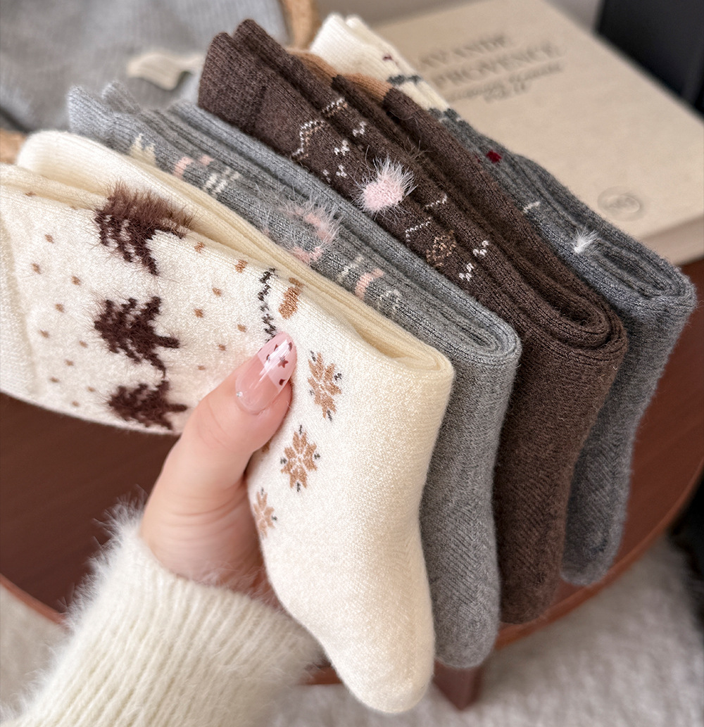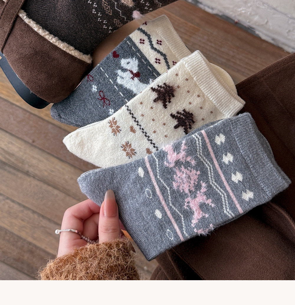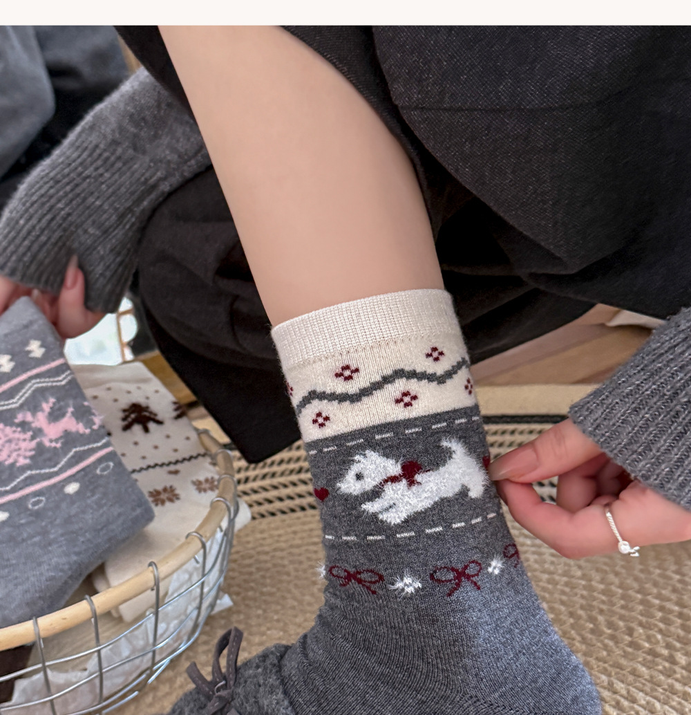 Носки с рисунком щенка Fair Isle для женщин, утолщенные шерстяные носки, носки средней длины для зимы