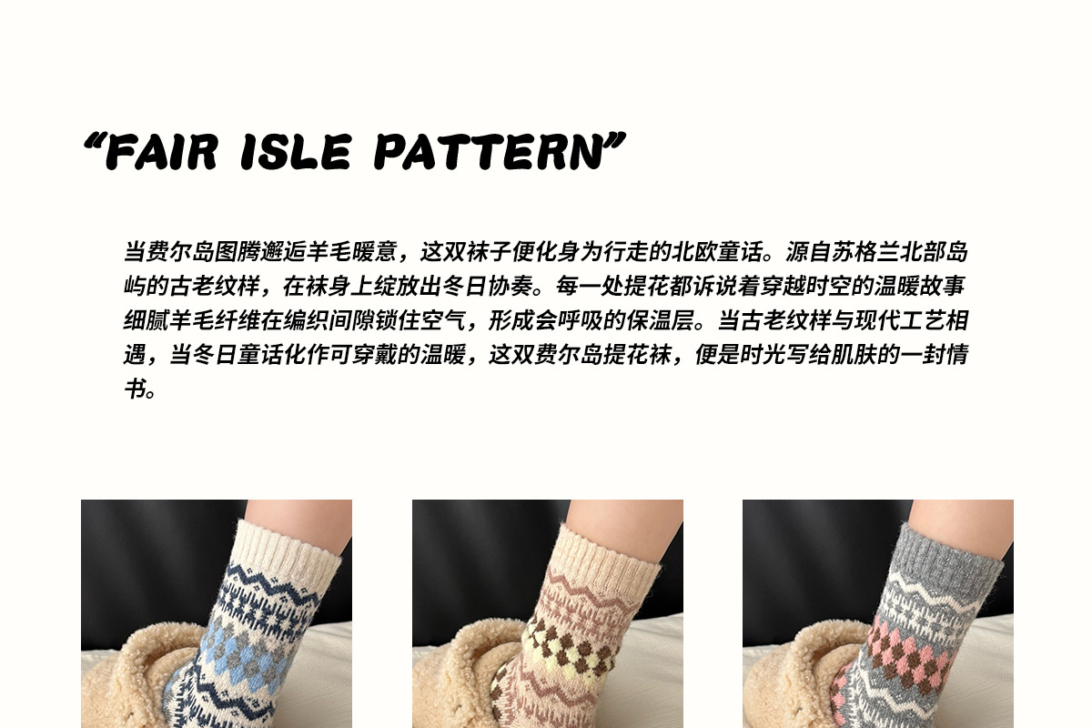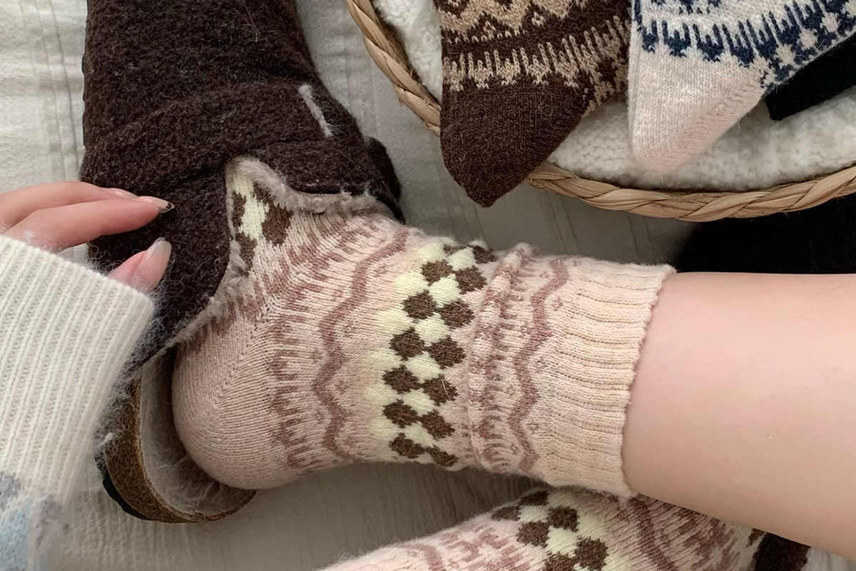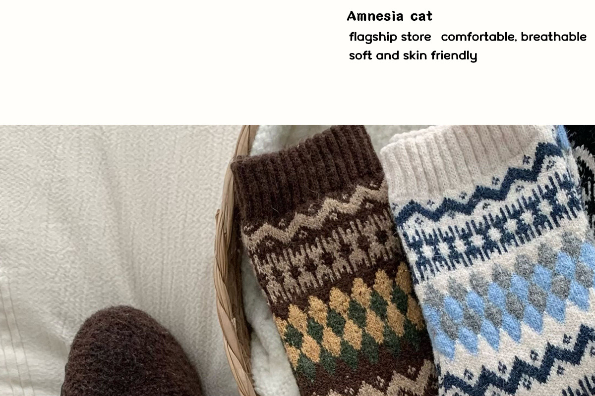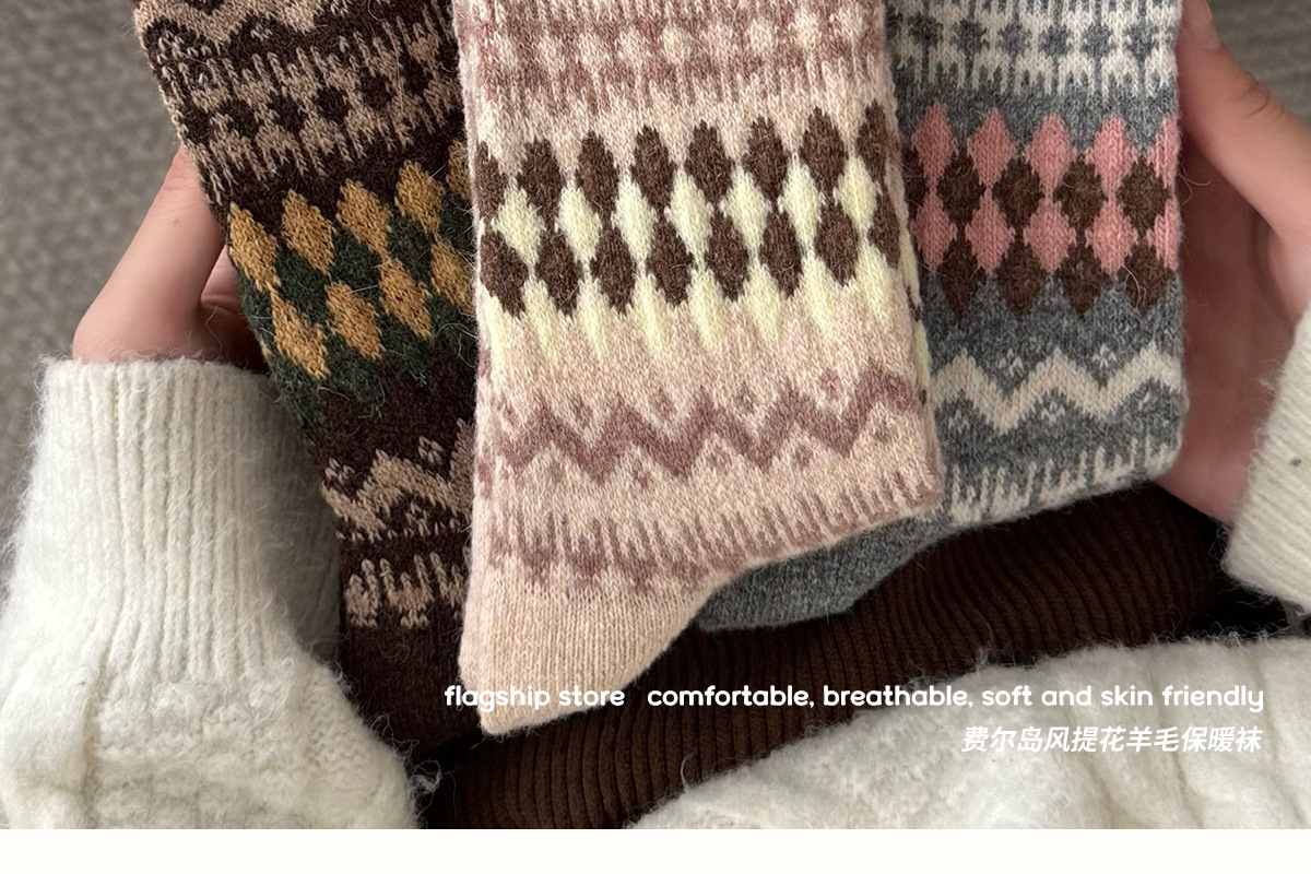 Шершащие носки Fair Isle, осень и зима, утолщенные, теплые, с Birkenstocks