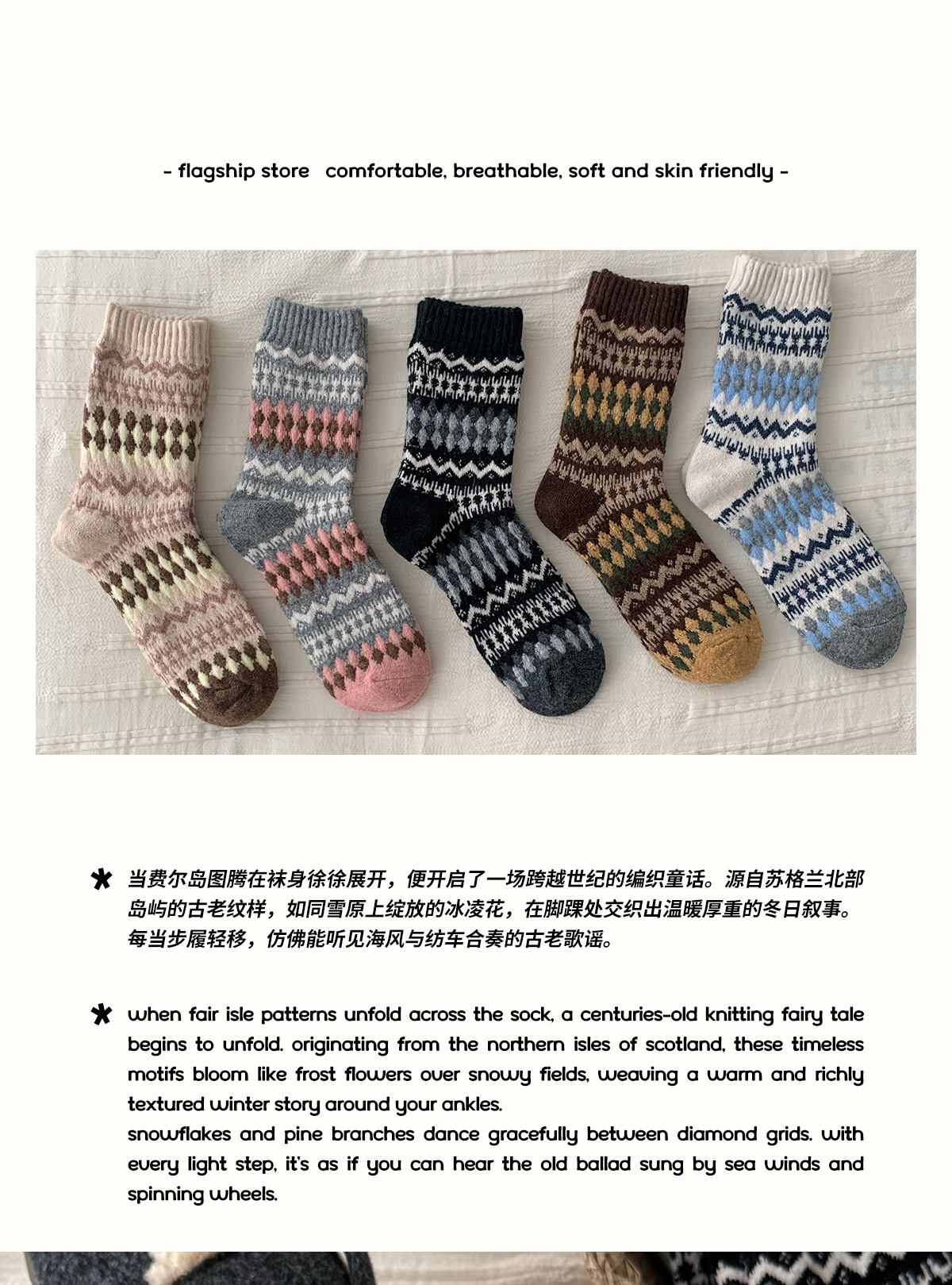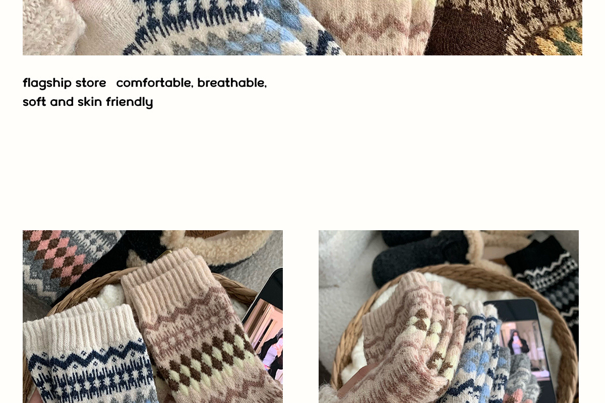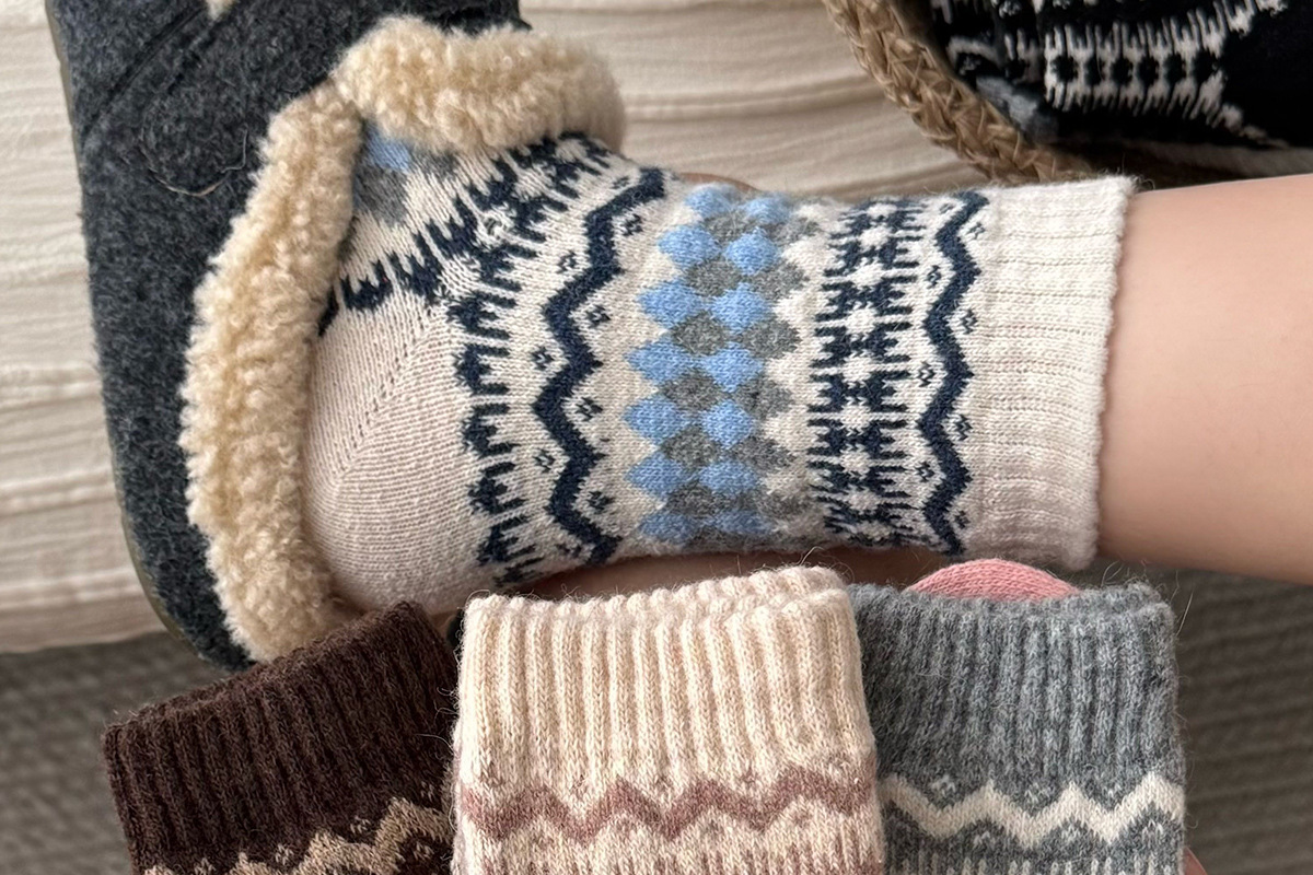 Шершащие носки Fair Isle, осень и зима, утолщенные, теплые, с Birkenstocks
