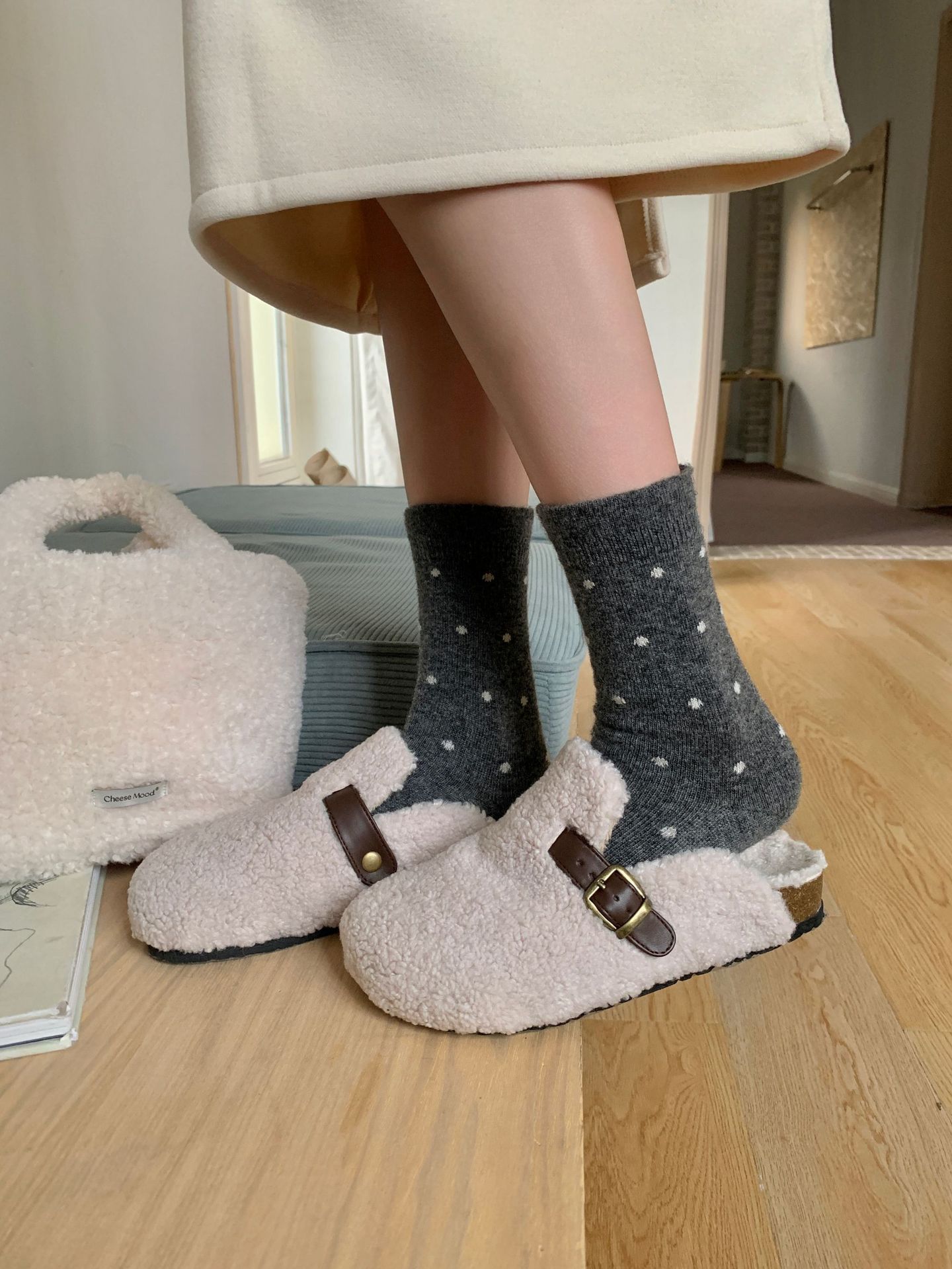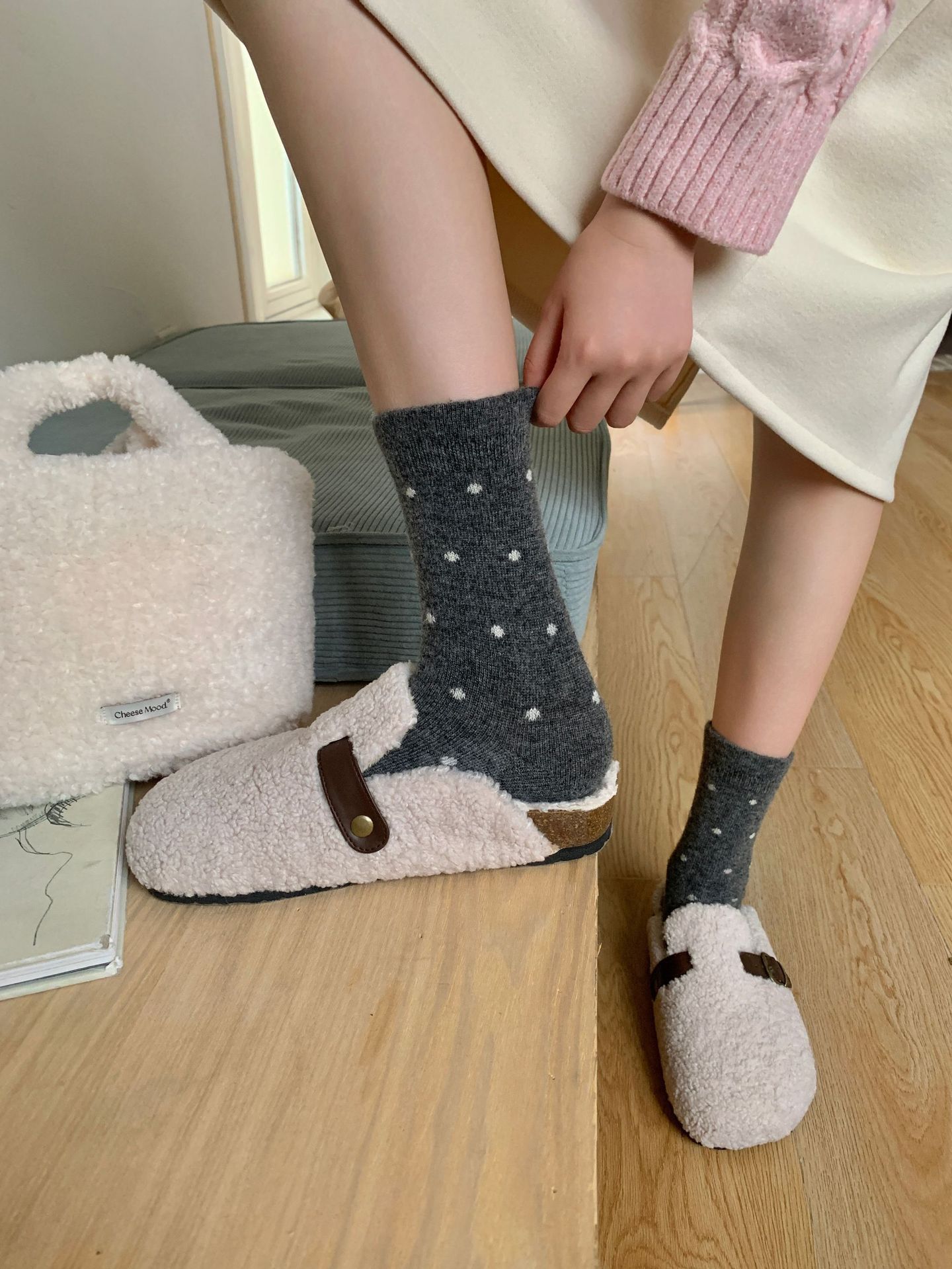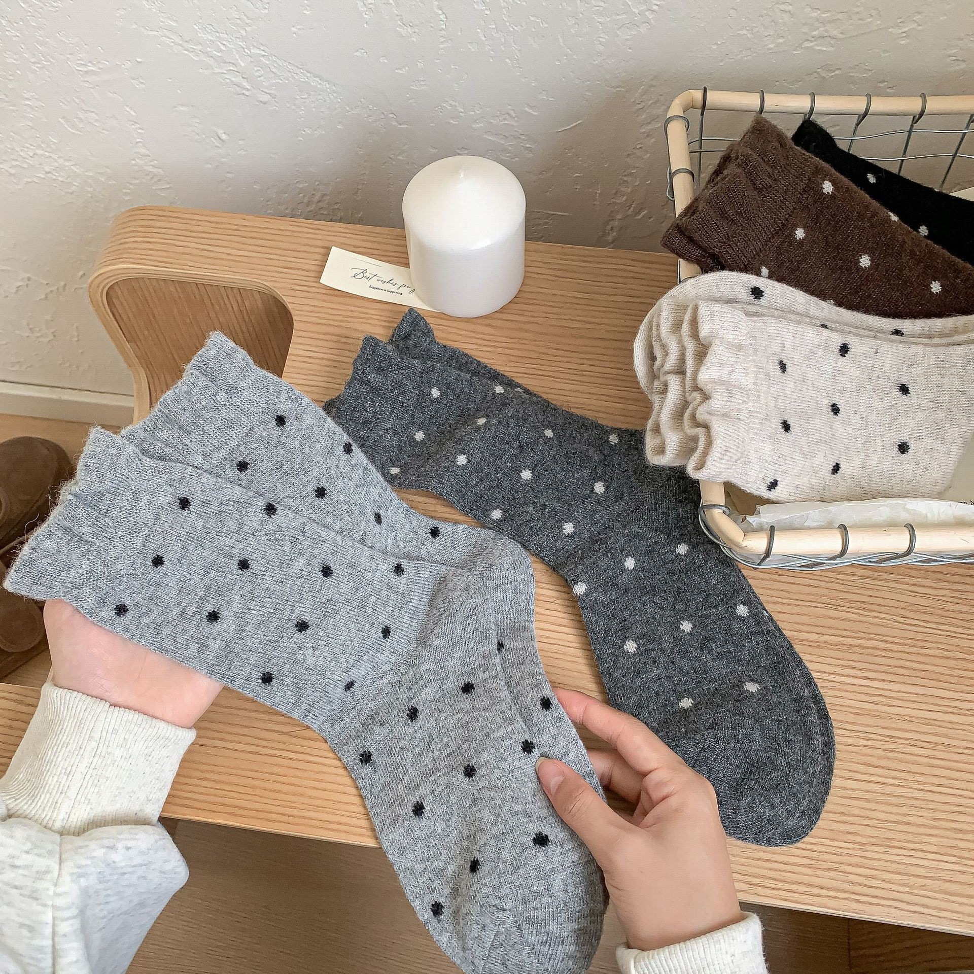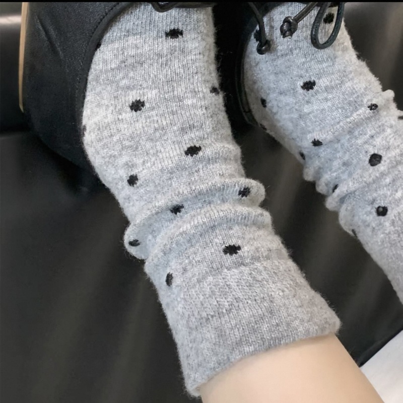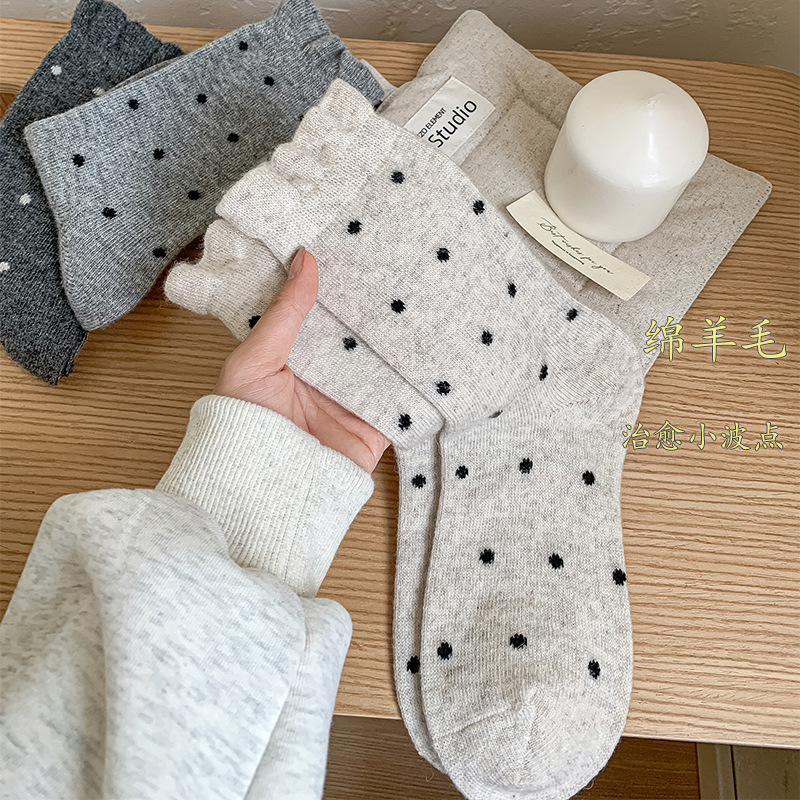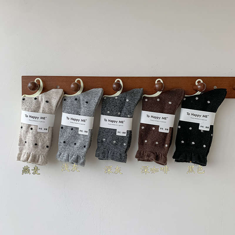 Шерстяные носки с рюшами, носки средней длины в горошек для женщин, сладкие и элегантные утолщенные носки для осени и зимы