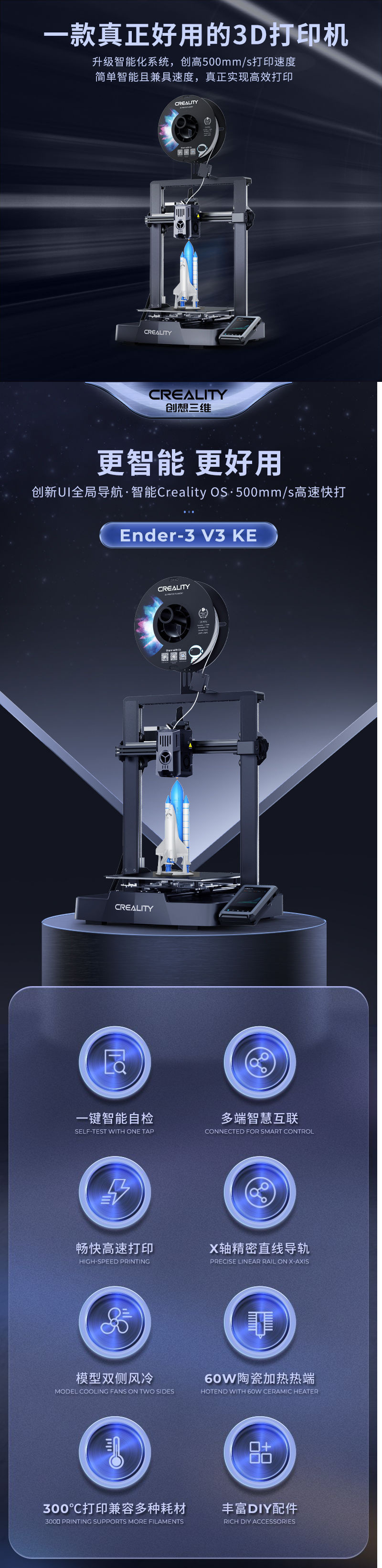 Трехмерный новый продукт Ender-3 V3 Ke высокоскоростной полностью автоматический уровень 3D-принтер производитель образовательный настольный