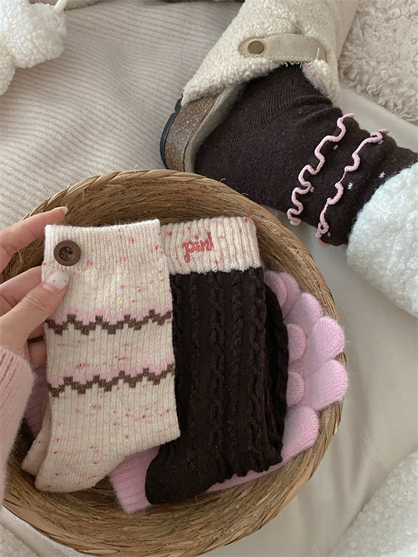 Толстые полосатые носки, осень и зима, корейский стиль