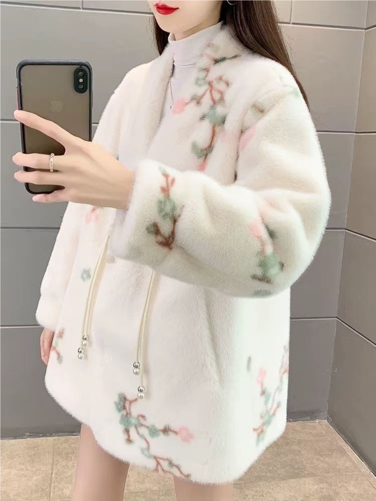Китайский стиль, новая верхняя одежда, осень-зима, утолщенная, имитация меха, печатный стиль, модная женская одежда