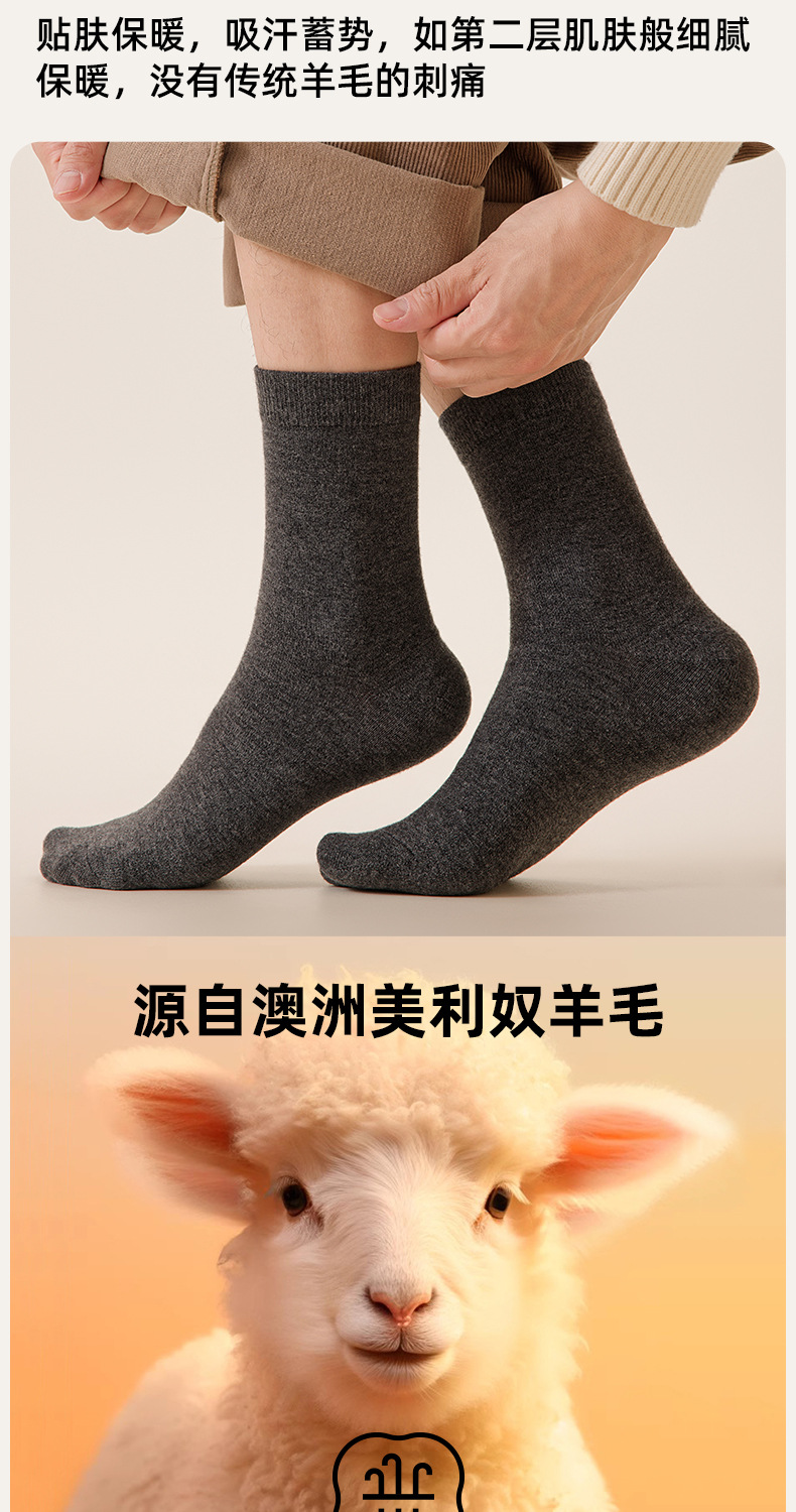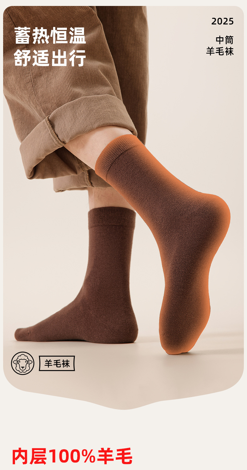 100% шерстяные носки для мужчин осенью и зимой, носки средней длины из мериносовой шерсти, утолщенные зимние носки