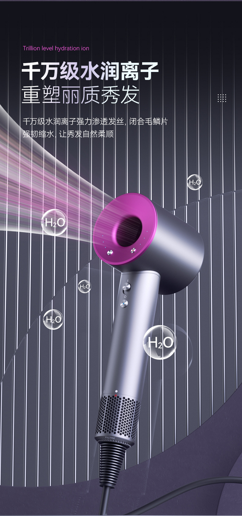 Высокоскоростной фен с негативными ионами, быстро сохнет, безлопастной