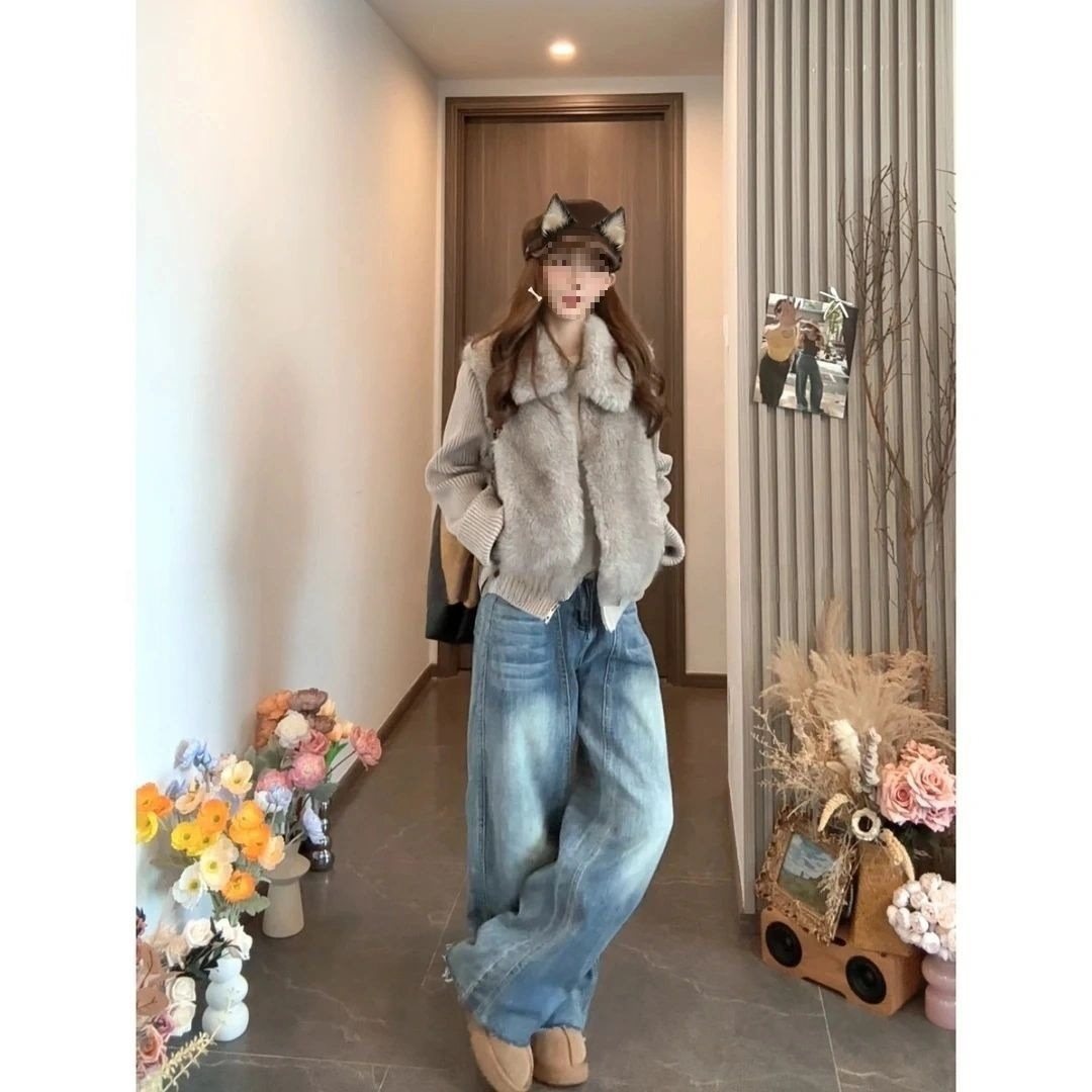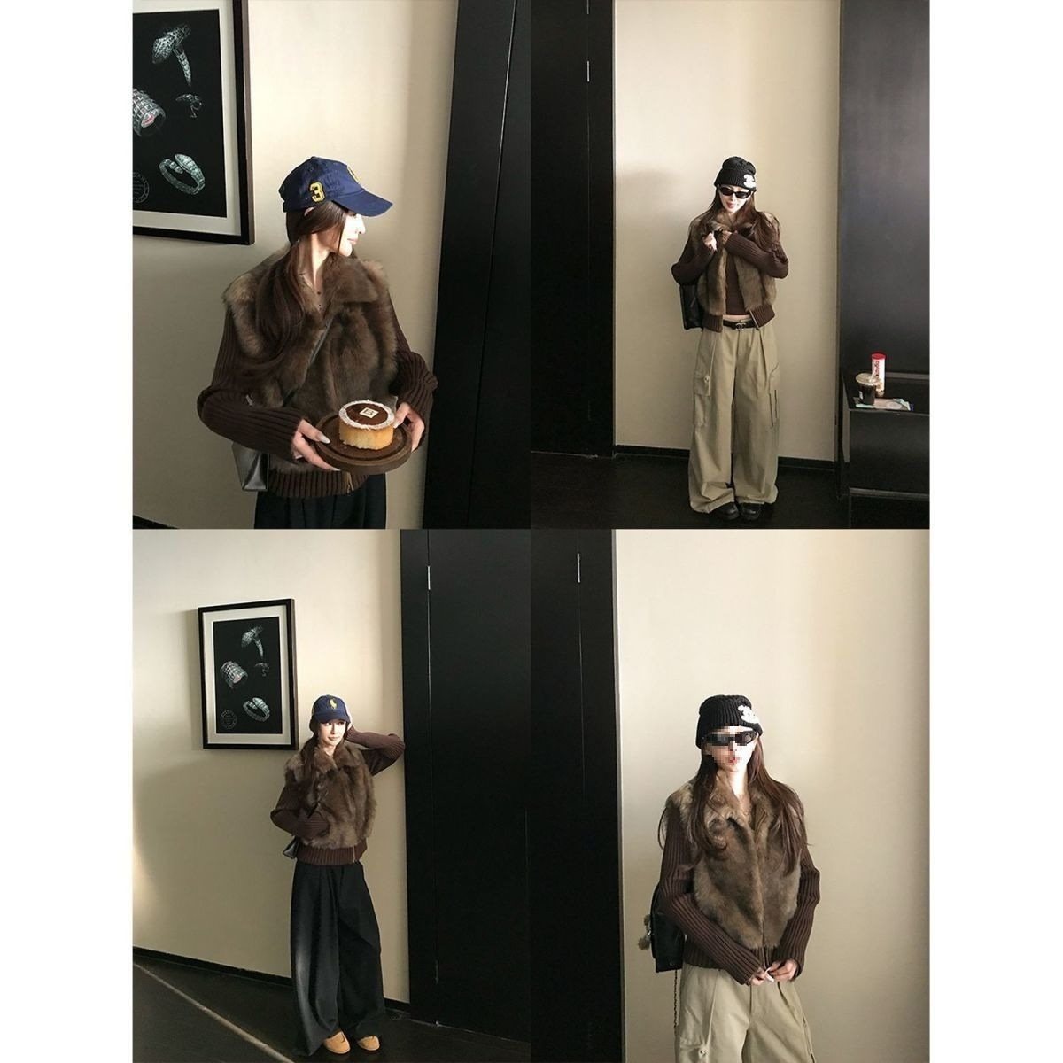 "Пуховое тепло" 2025 Новая модная осенняя вязаная кофточка и меховая куртка