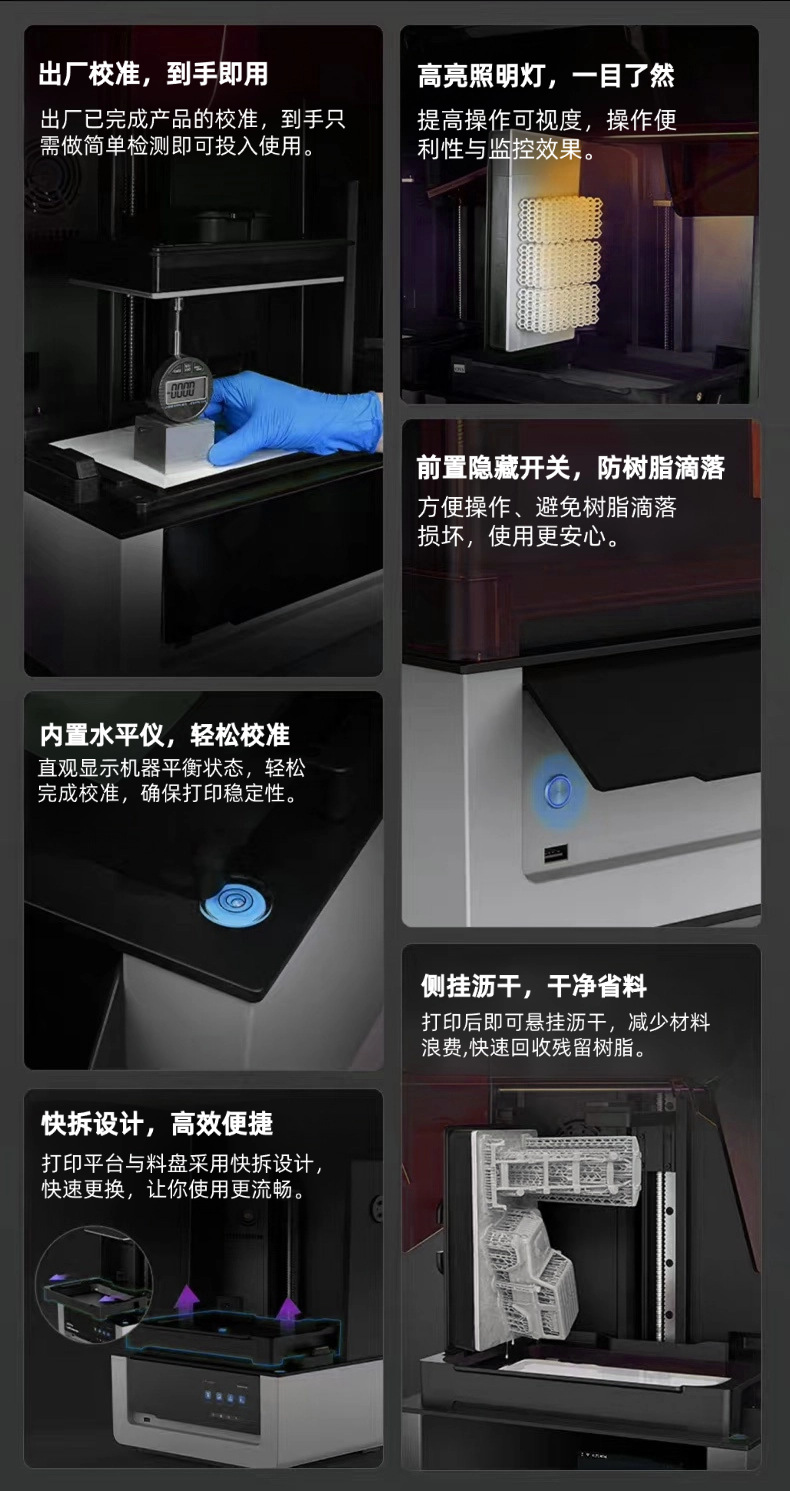 Применимые сценарии Dental resin printing jewelry resin printing high-precision resin printing figure model printing 3d printing field desktop-grade 3d printing for home and office use