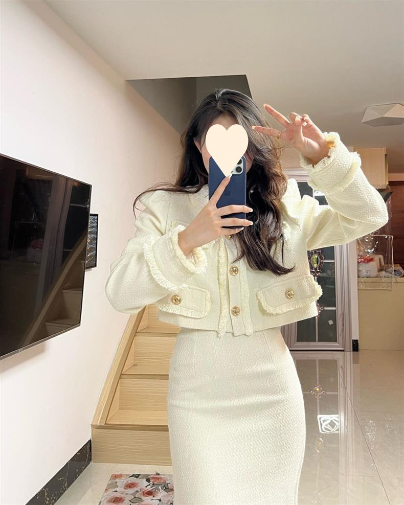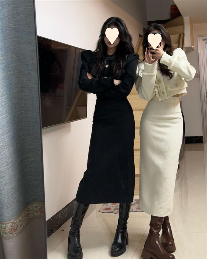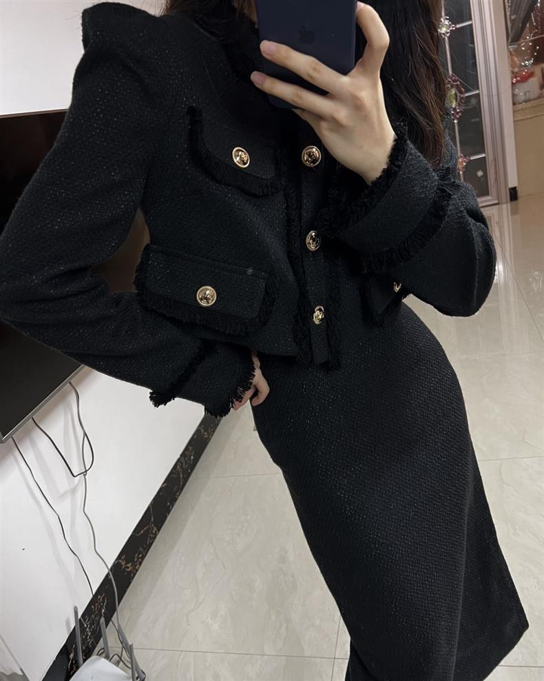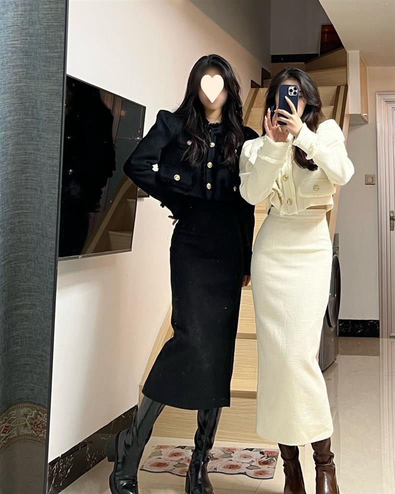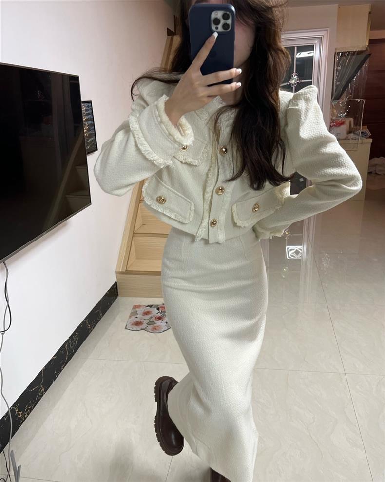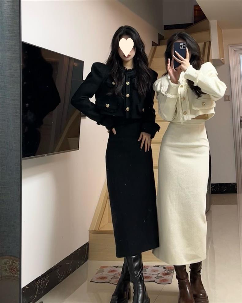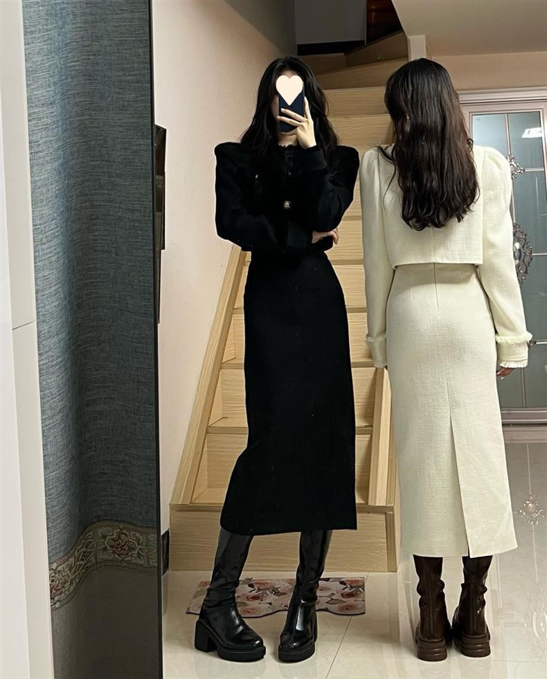 Новый модный костюм для женщин осень-зима, короткий пиджак, стройнящий вид, разрезанная длинная юбка
