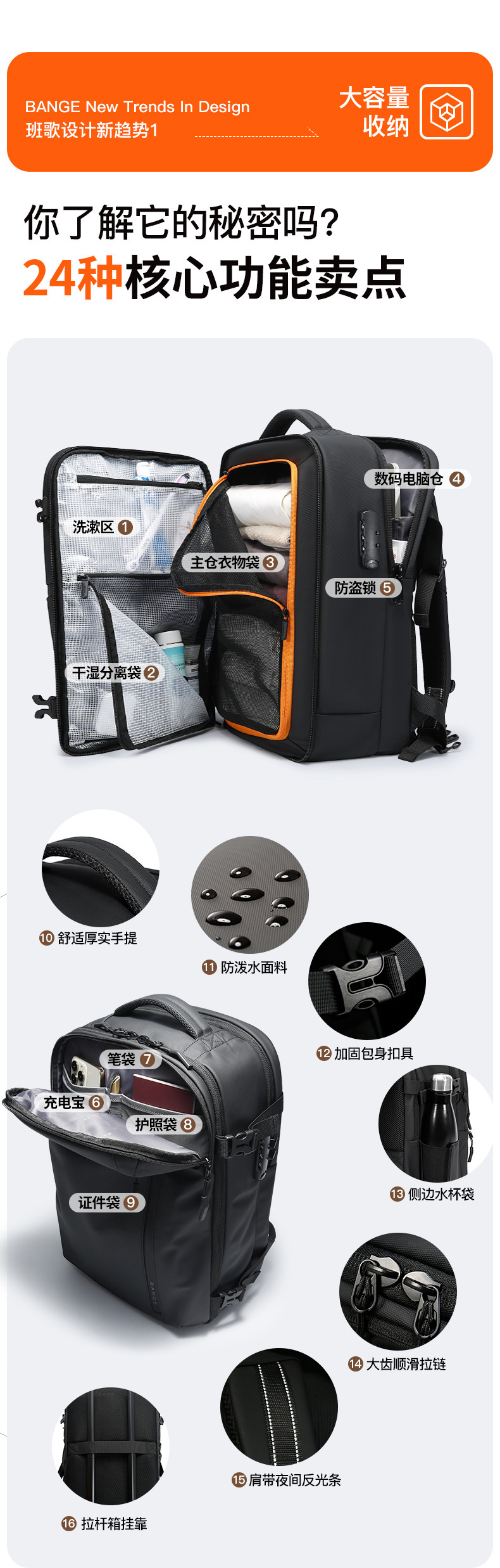 Рюкзак Bange для путешествий, многофункциональная сумка большого объема для мужчин и женщин, бизнес-повседневный рюкзак для мужчин, сумка для компьютера